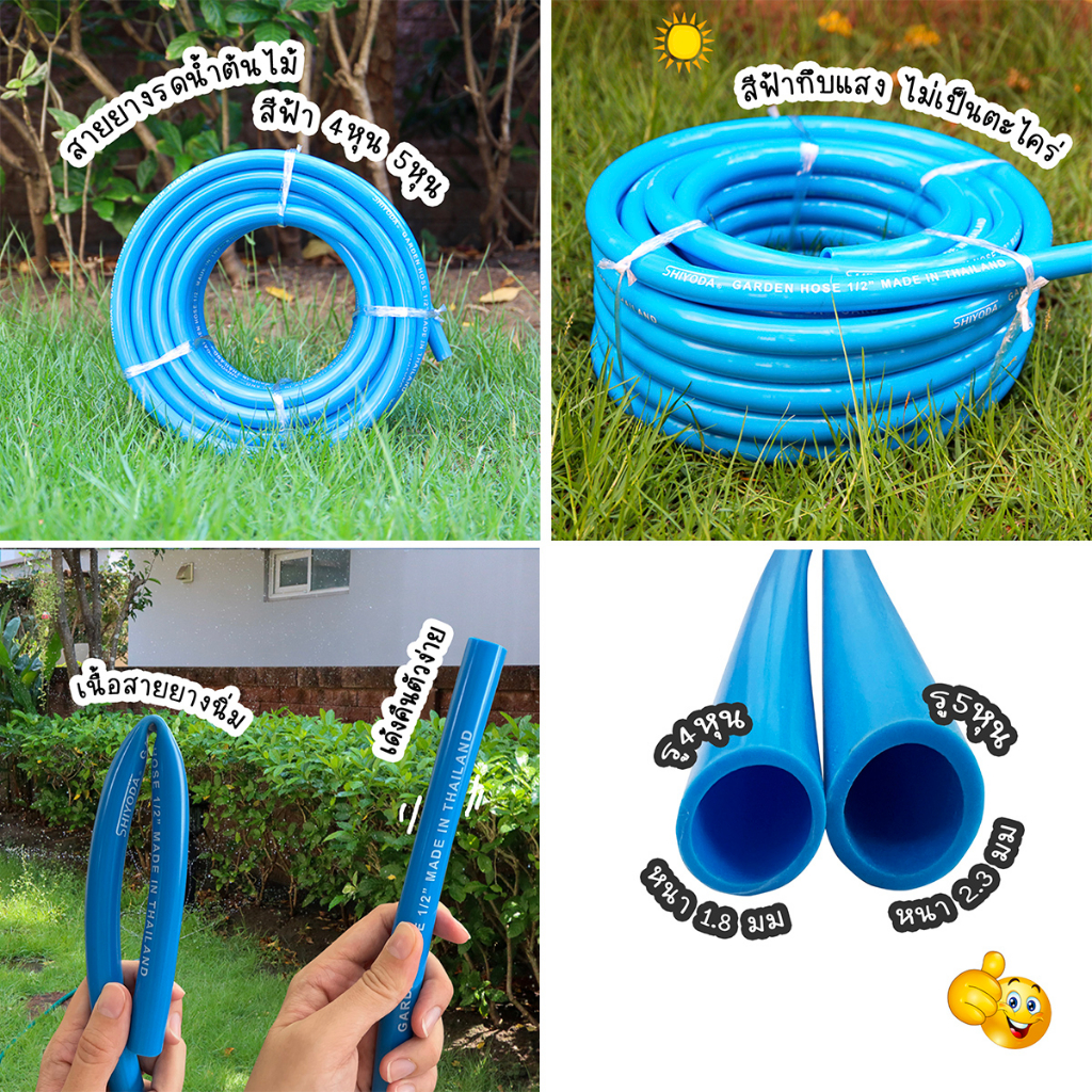 [ราคาต่อเมตร] Shiyoda สายยางรดน้ำ 1/2″ (4 หุน) สีฟ้า หนานิ่ม คุณภาพดี ทนแดด 3 ปี ไม่แข็งกรอบ ใช้รดน้ำสวน [BR012-1]
