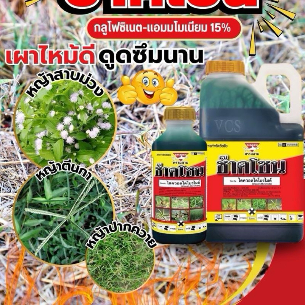 [ 1 แกลลอน ] ช๊าคโซน ไดควอตไดโบรไมด์ ยาฆ่าหญ้าแบบเผาไหม้ ยาเผาไหม้ สารแทนพาราควอต