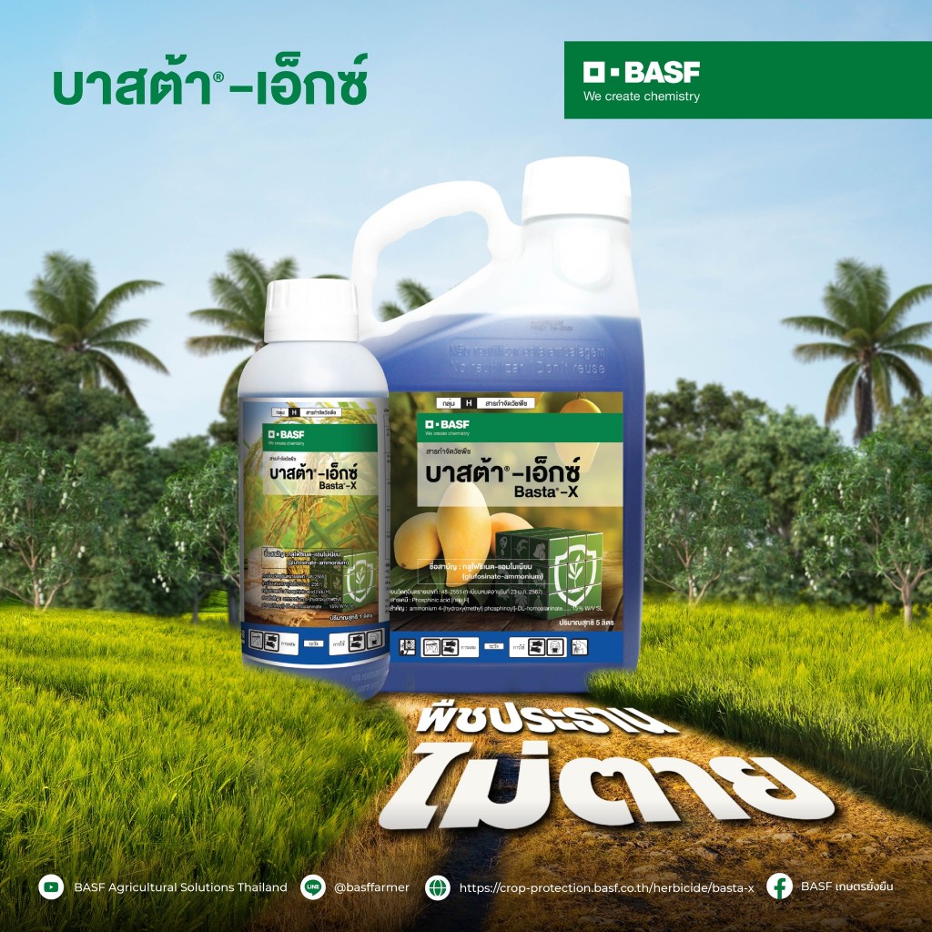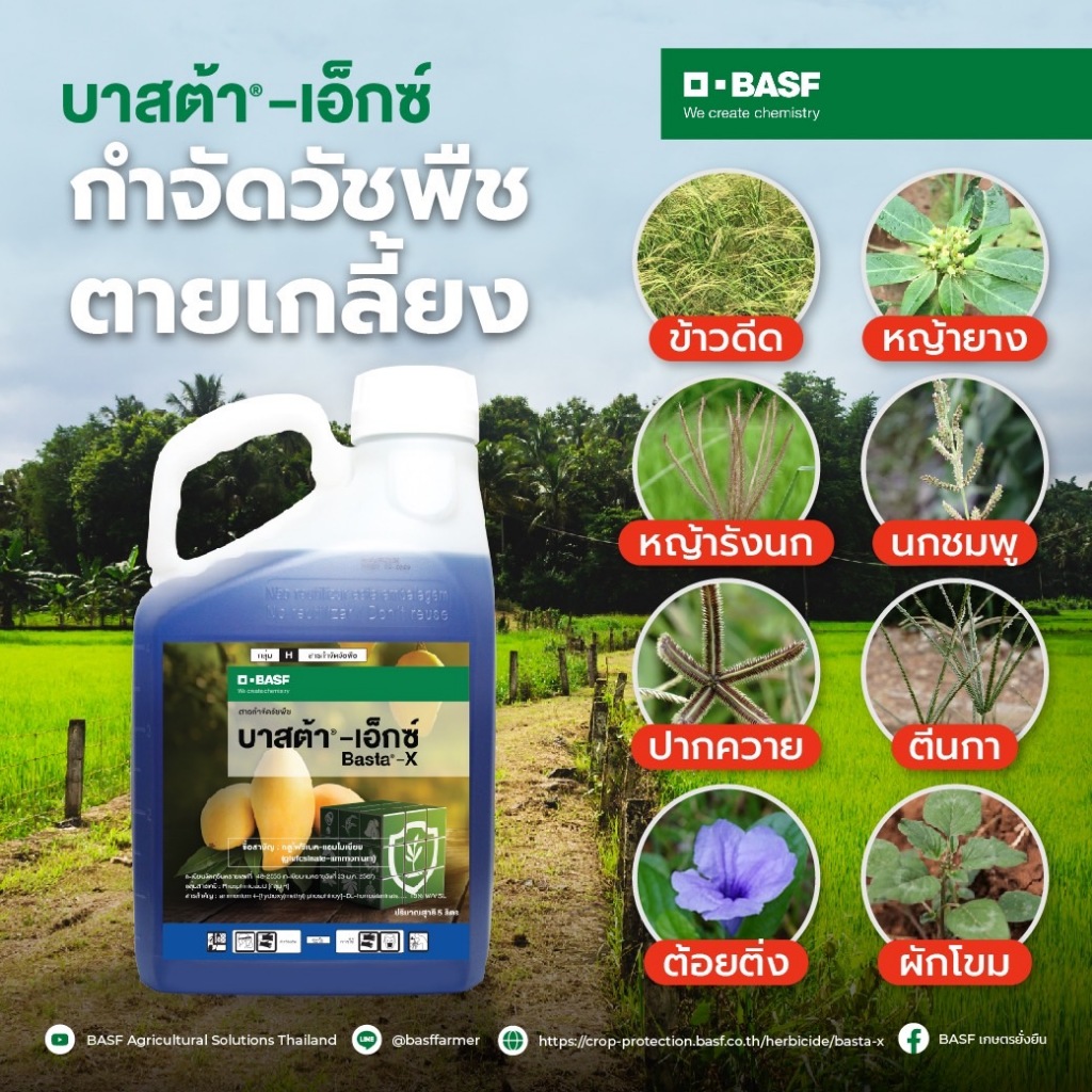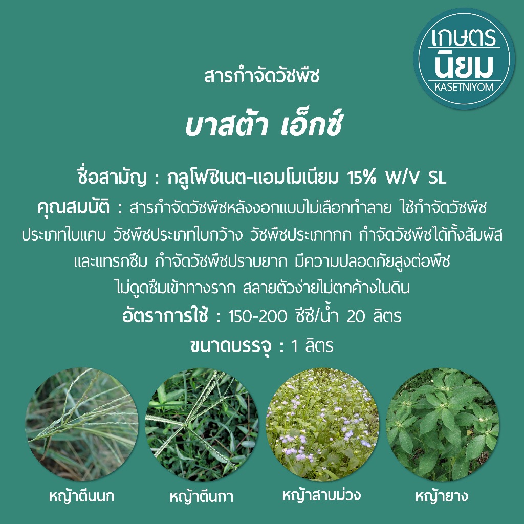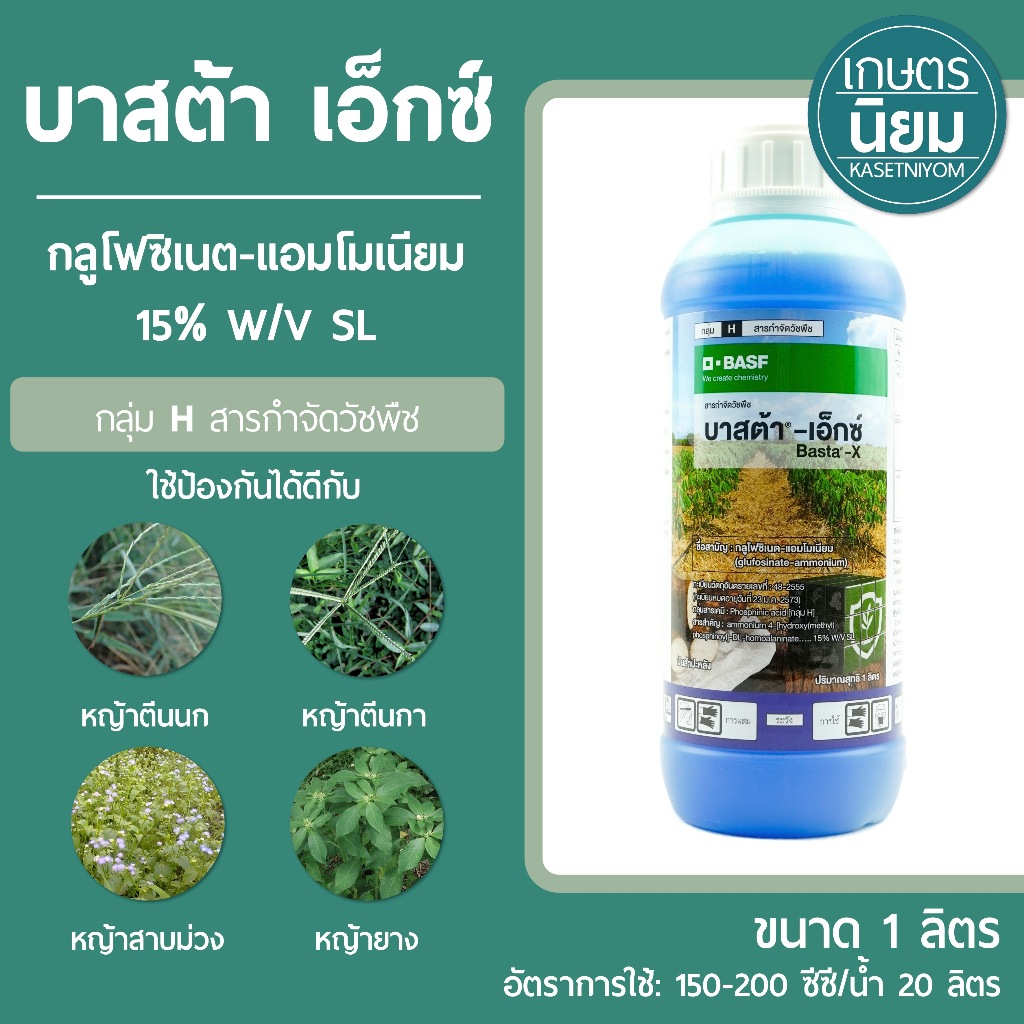 บาสต้า เอ็กซ์ (กลูโฟซิเนต-แอมโมเนียม) 1ลิตร กำจัดวัชพืชใบแคบและใบกว้าง หญ้าปากควาย หญ้าตีนกา แห้วหมู