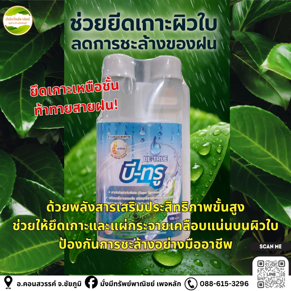 บีทรู สารจับใบเข้มข้นสูตรพิเศษ ซิลิโคน 100% เสริมฤทธิ์การแทรกซึมและกระจายสารกำจัดศัตรูพืชทุกชนิด ขนาด100 CCผสมน้ำ400ลิตร