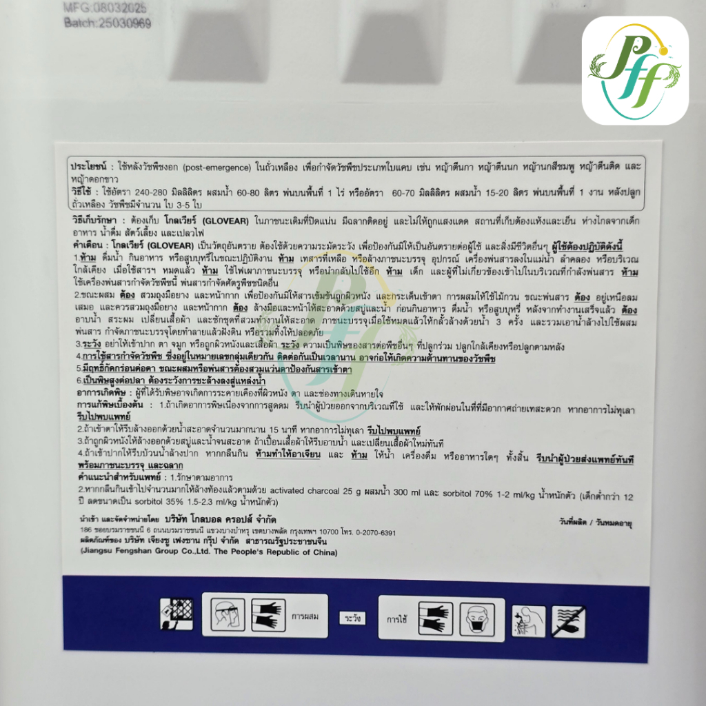 โกลเวียร์ 5 ลิตร ยาลุยไร่มัน ฉีดพ่นทับยอดได้ กำจัดหญ้าใบแคบ ปลอดภัยต่อพืชประธานใบกว้าง