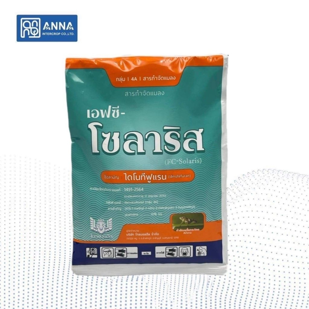 โซลาริส ไดโนทีฟูแรน ขนาด 100 กรัม ใช้ควบคุมแมลงปากดูด เช่น เพลี้ยไฟ เพลี้ยแป้ง เพลี้ยกระโดดสีน้ำตาล แมลงหวี่ขาว