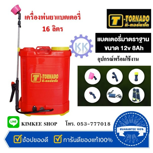 T-TORNADO เครื่องพ่นยาแบตเตอรี่ ขนาด 16L แถมฟรี! ถุงมือยาง