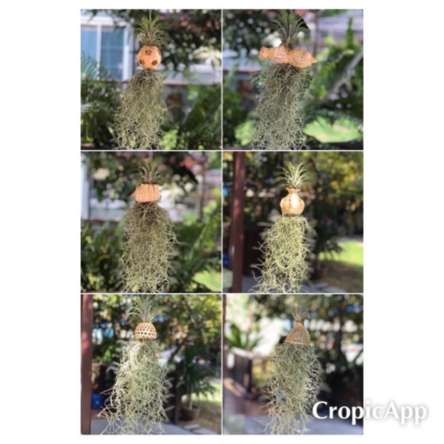 โมบายเครื่องจักรสานไม้ไผ่จิ๋ว พร้อมแขวนลวด ต้นทิลแลนเซียห้อยหนวดฤาษี มี 6 ลาย ลวดแขวนยาวปนะมาณ 45 เซนครับ
