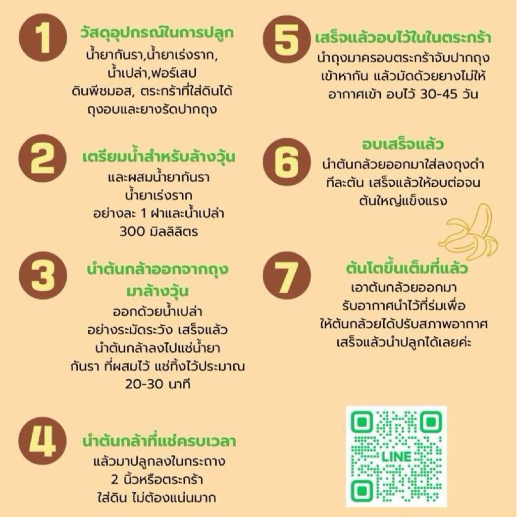 กล้วยน้ำว้า มะลิอ่อง ชุด 2 หน่อ 55 บาท ปลูกเป็นง่าย ชอบฝนทนแล้ง เก็บผลผลิตใน 7-8 เดือน สุกหวานอร่อย ใช้ทำขนมได้