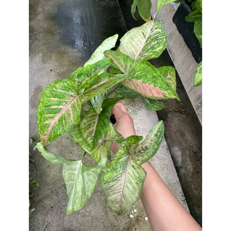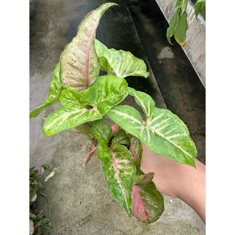 Syngonium Pink Freckles ออมพิงค์เฟลคเคิ้ล ซิงโกเนียม ออมชมพูด่างเขียว รากแข็งแรงแล้ว