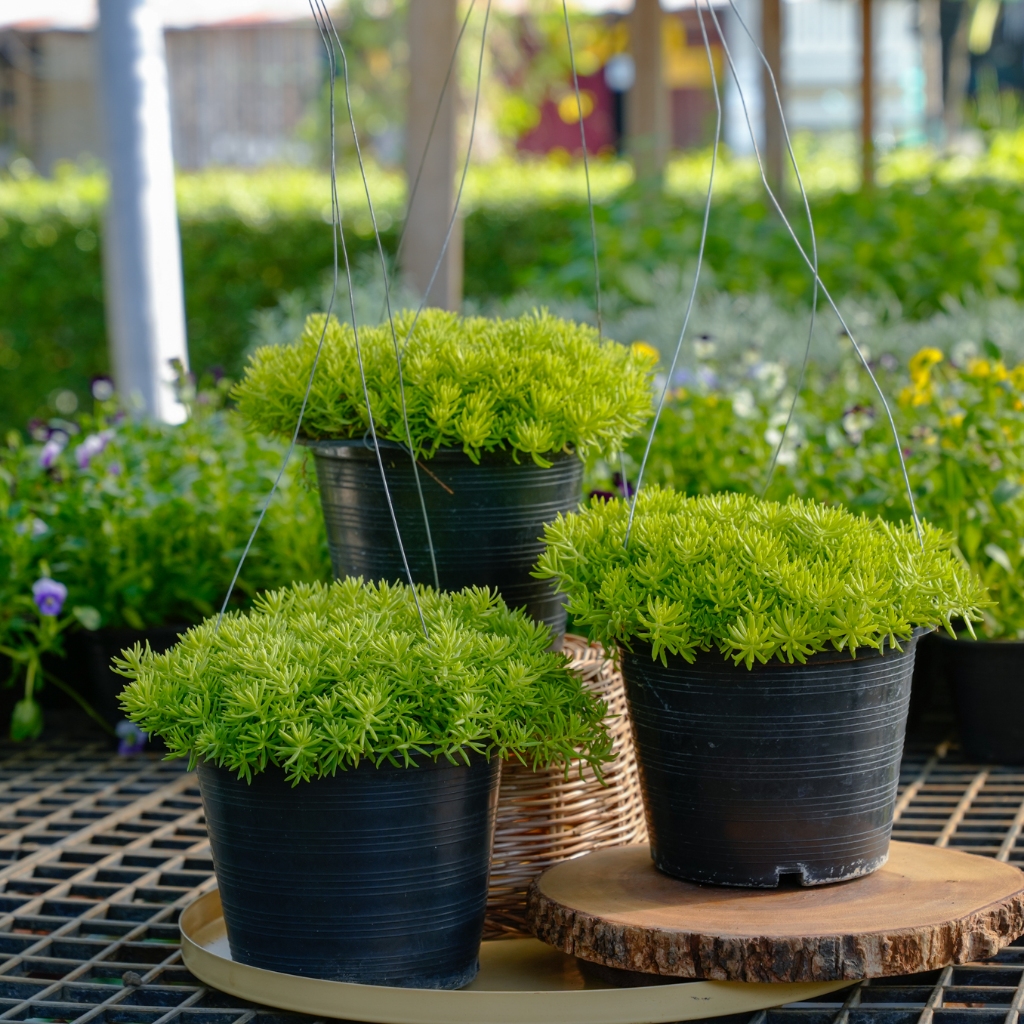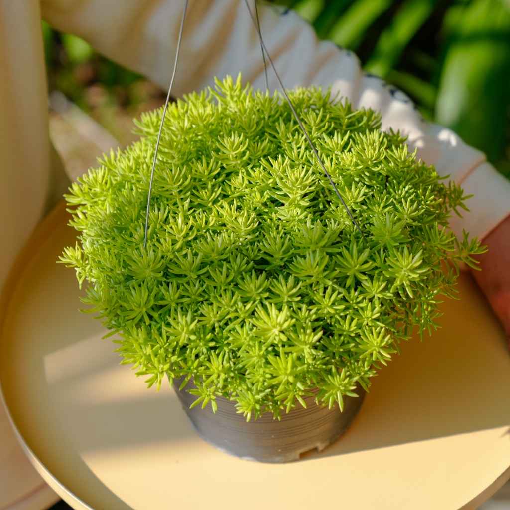 Treeno.9 T311 แพรทอง ไม้มงคล (Gold Moss Sedum) กระถางแขวน 8 นิ้ว / สูง 20-25 ซม. / ไม้ประดับ (ต้นไม้)