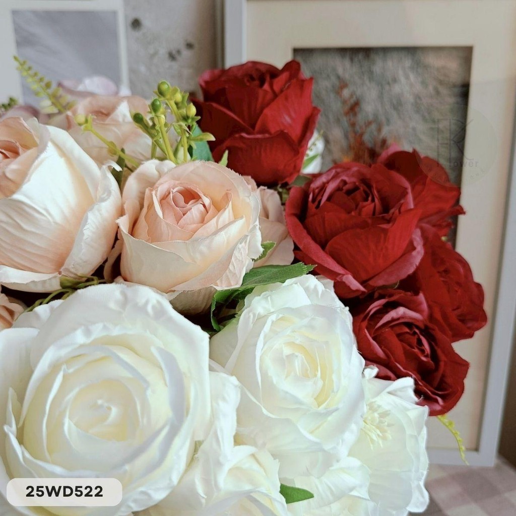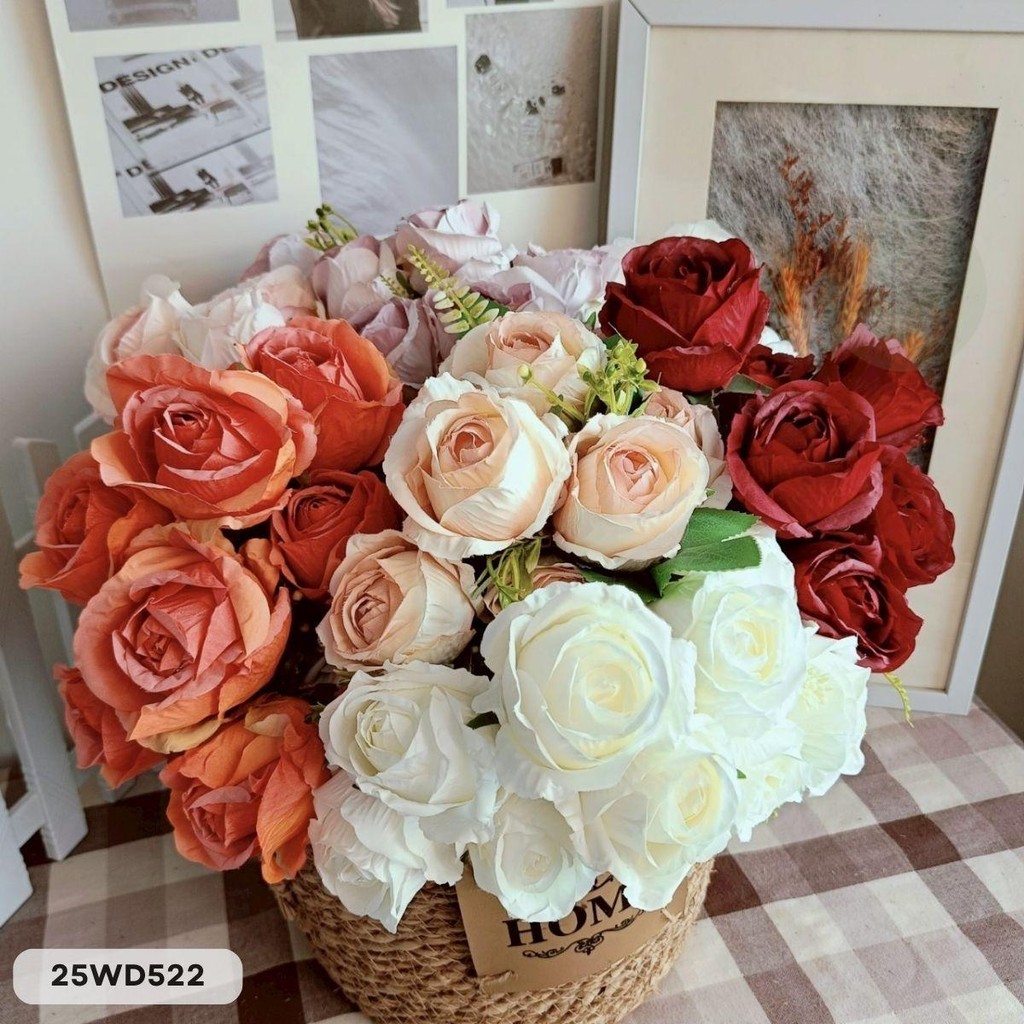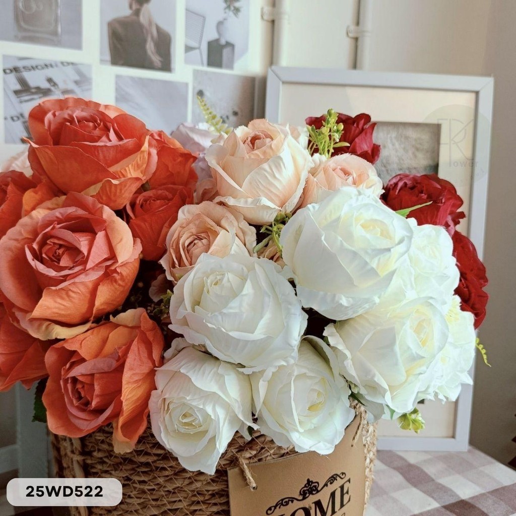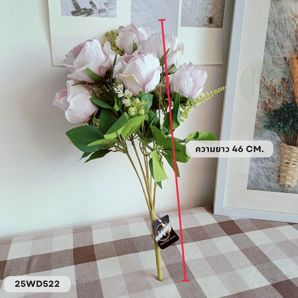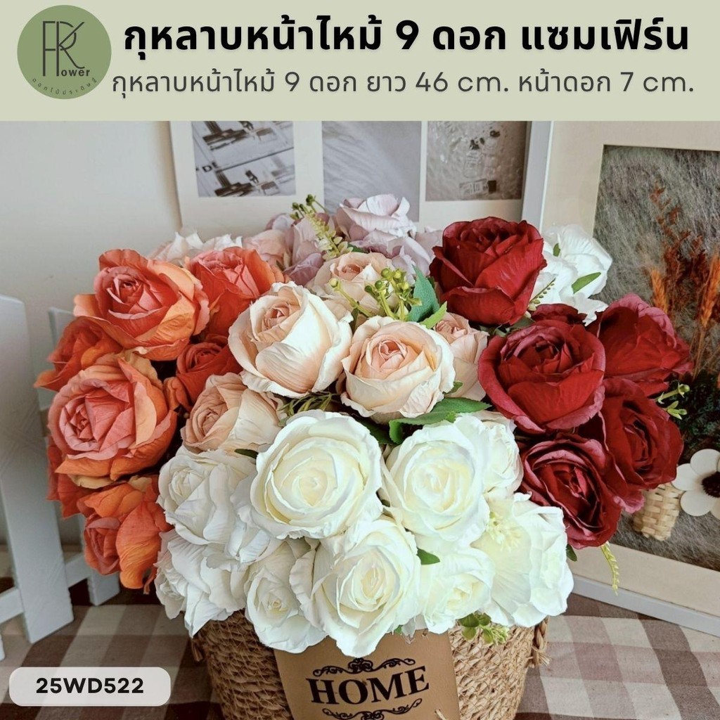 กุหลาบหน้าไหม้ 9 ดอก แซมเฟิร์น ต้นยาว 46 cm. หน้าดอก 7 cm.