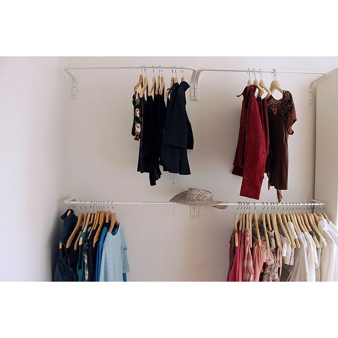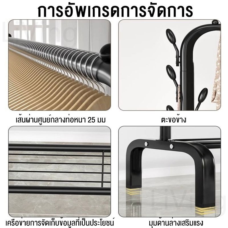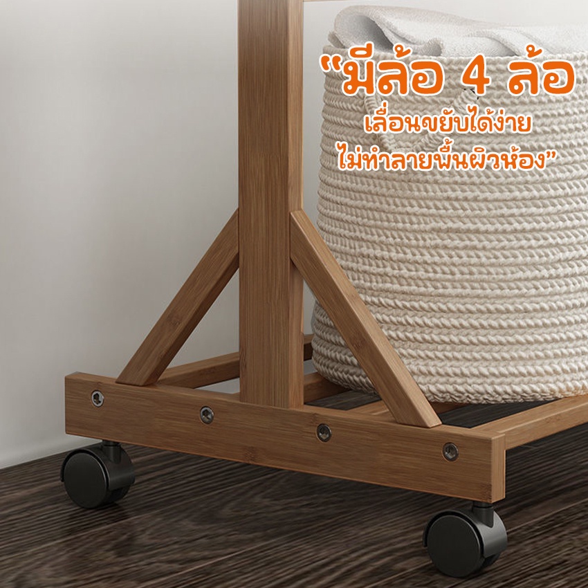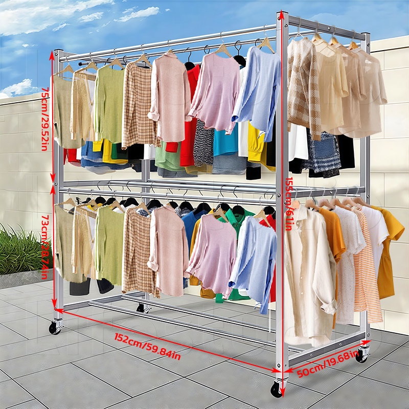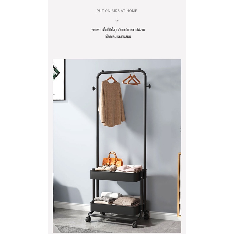 IEASY ราวตากผ้า ราวแขวนเสื้อผ้า ราวเหล็กมีล้อ บาร์คู่ ชั้นวาง 2 ชั้น ชั้นวางเสริมด้านข้าง โครงเหล็ก เสริมชั้นวางด้านข้าง