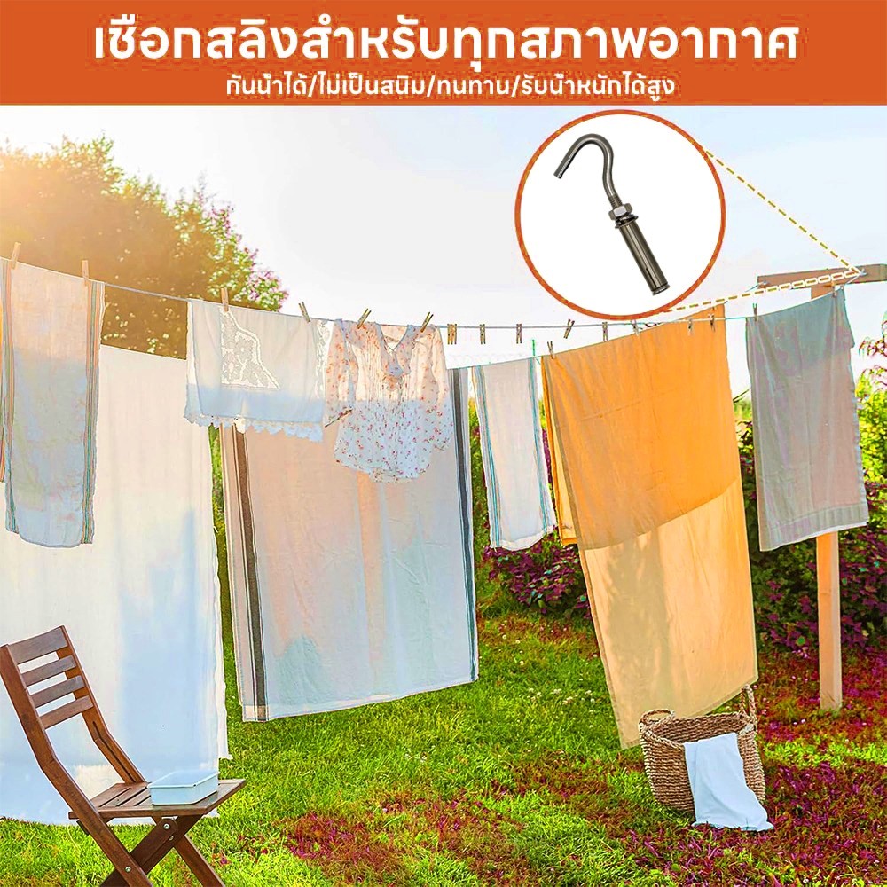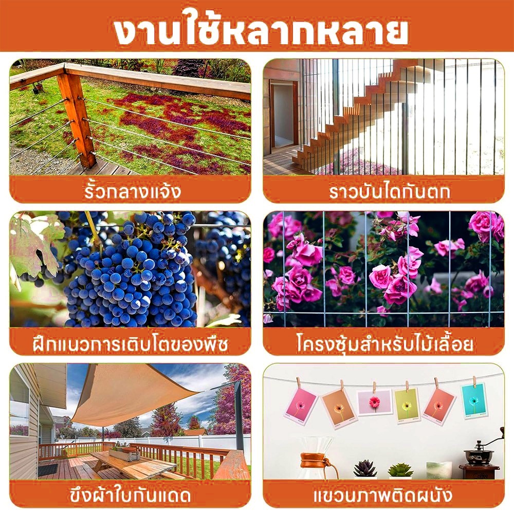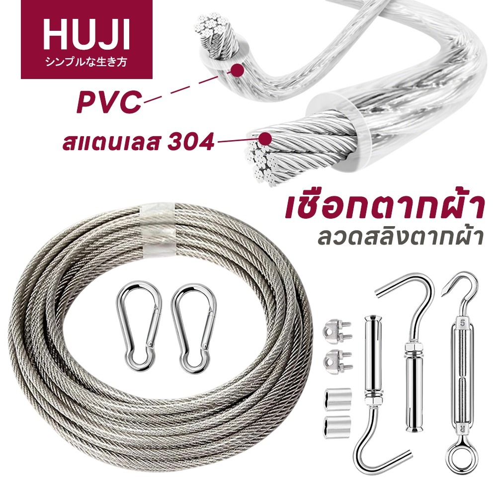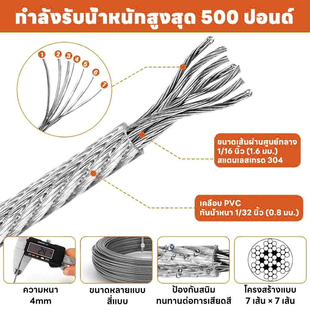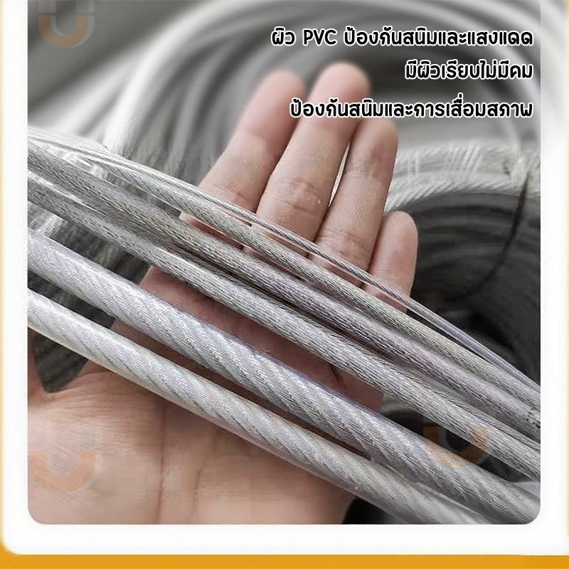 HUJI⚡5/10/15M ลวดเหล็กเคลือบพลาสติกใสราวตากผ้าเชือกกลางแจ้งสแตนเลสห นา4มม. ครัวเรือนในร่ม ป้องกันสนิม