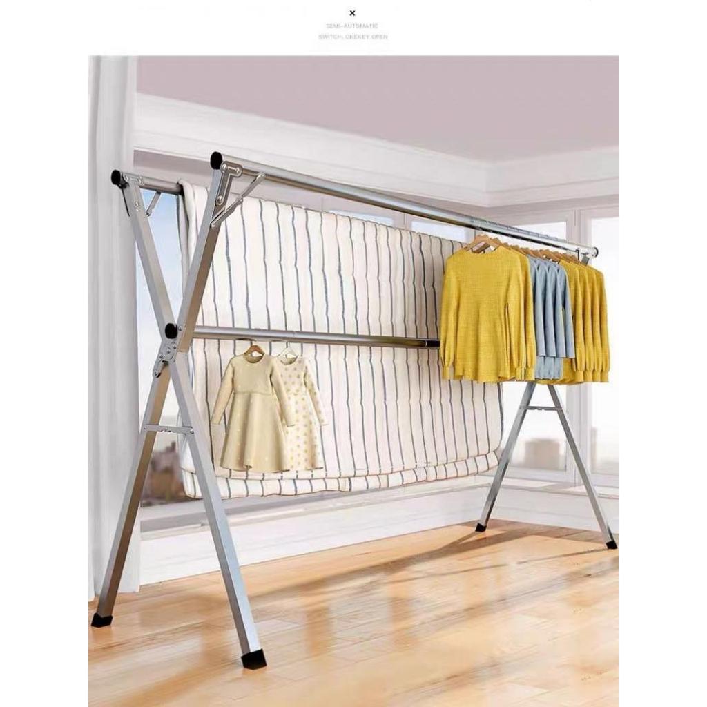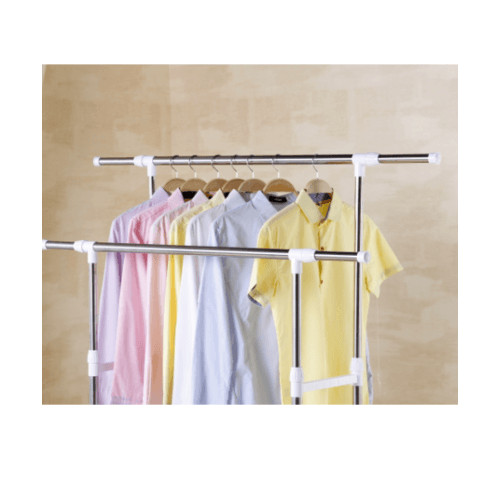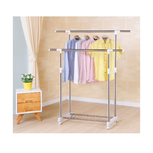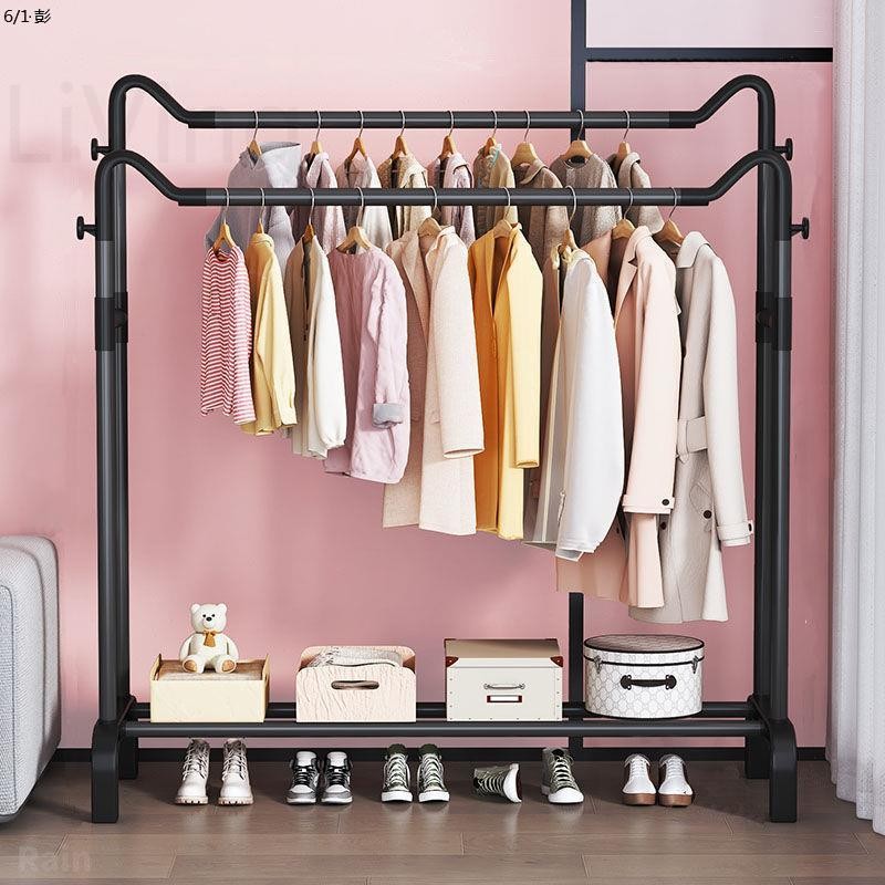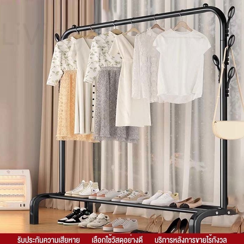 Living ตากผ้าบาร์คู่ ราวตากผ้า 110/130/150CM ราวเเขวนผ้าเหล็ก โครงเหล็กเเข็งเเรง ใช้สำหรับห้องนอน รองรับน้ำหนัก50kg