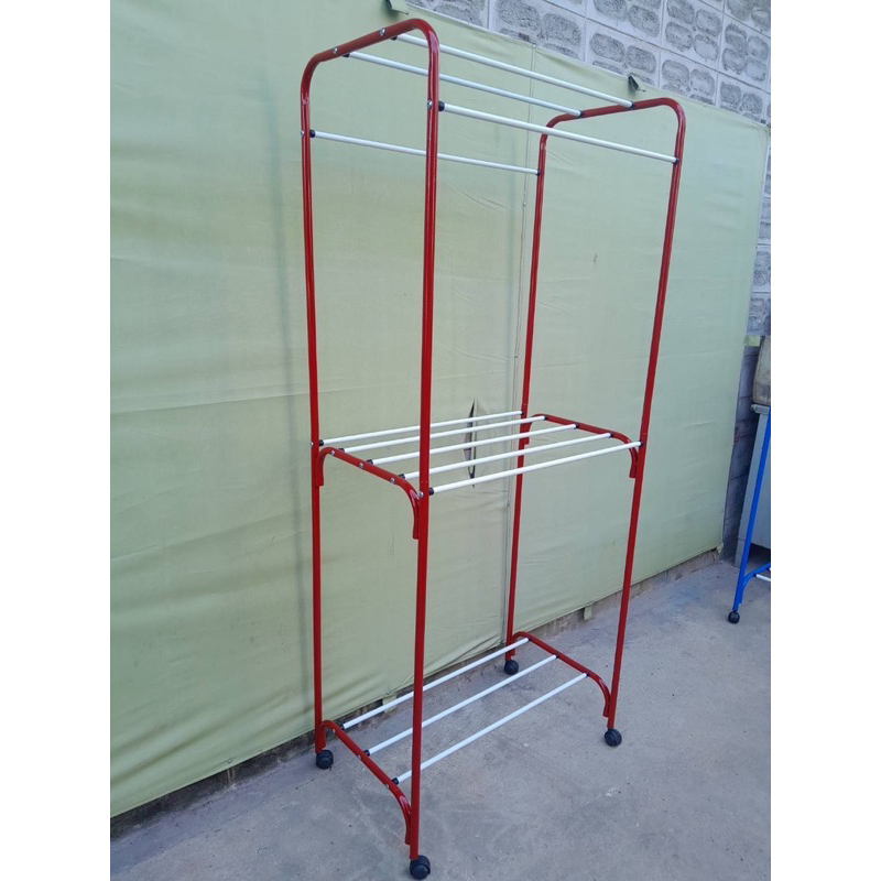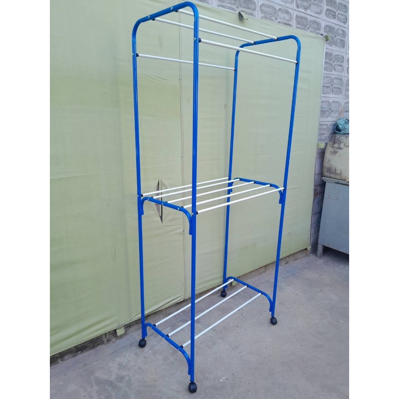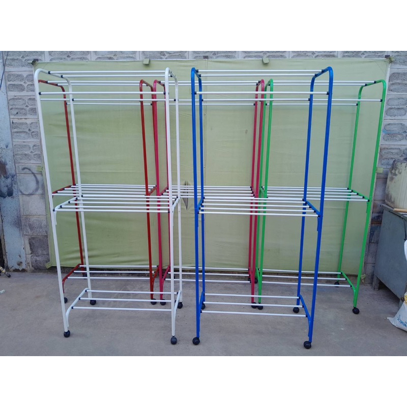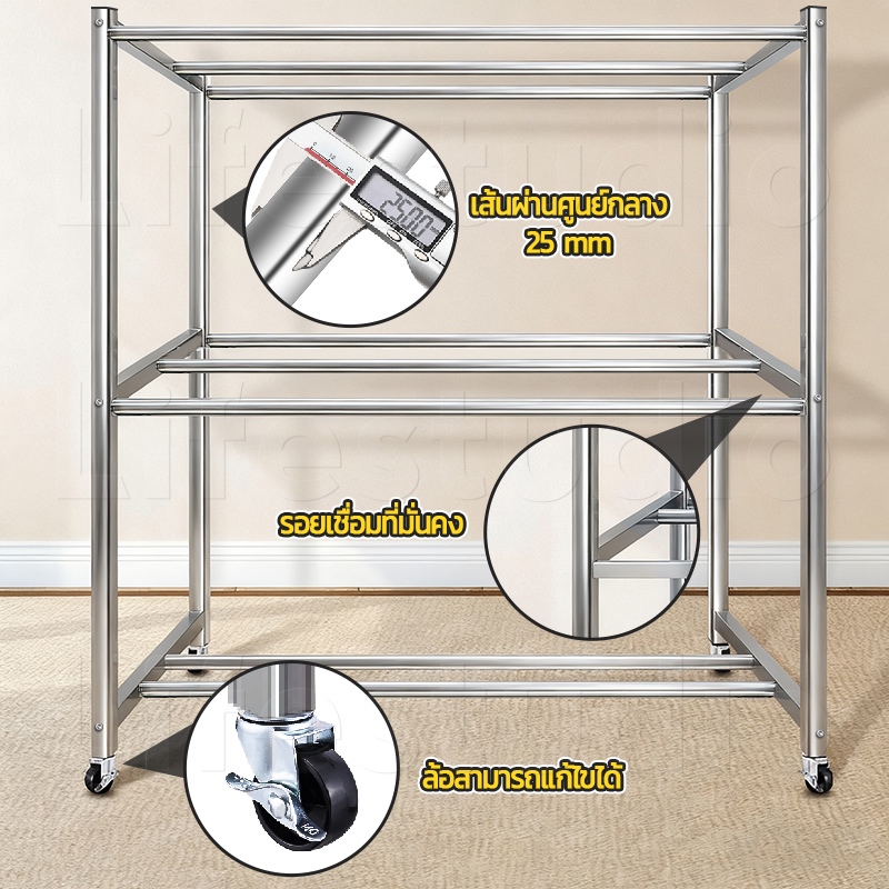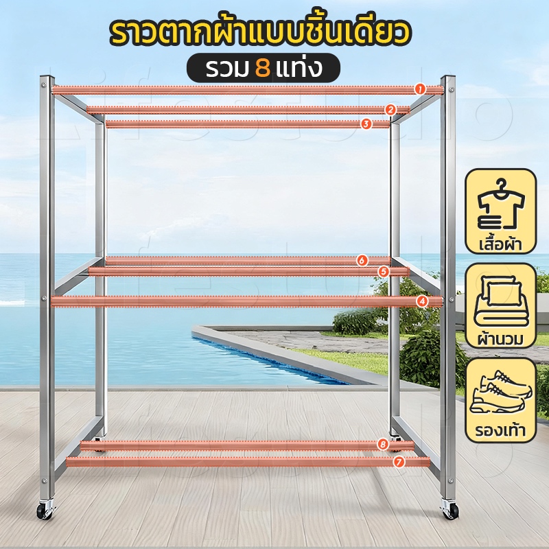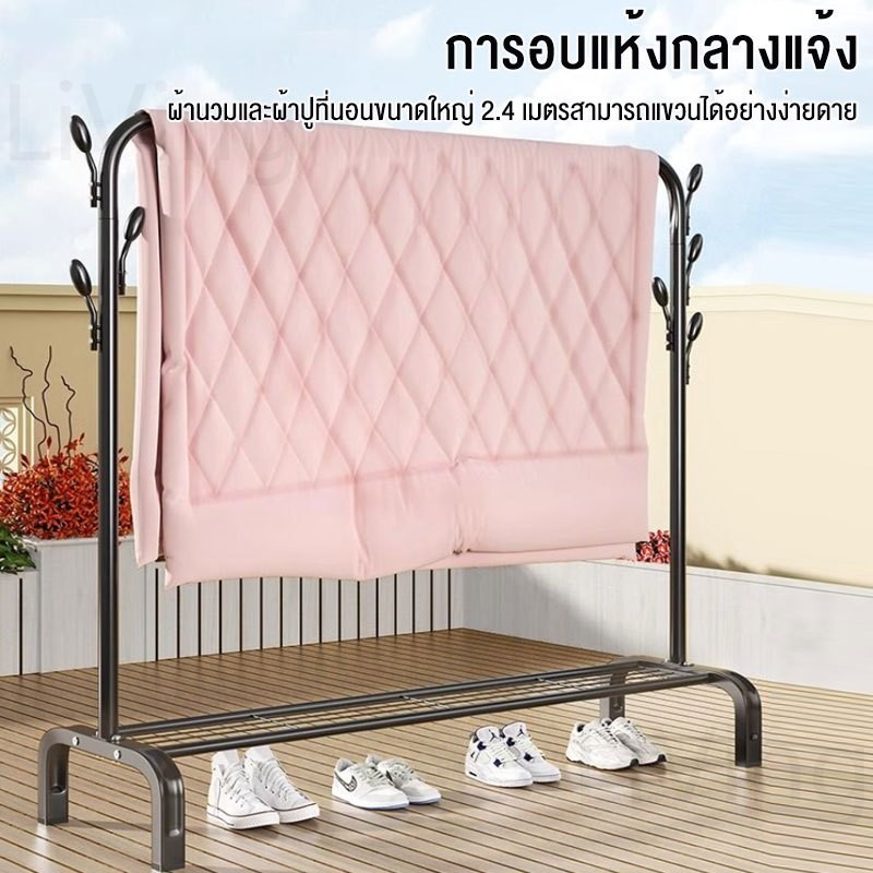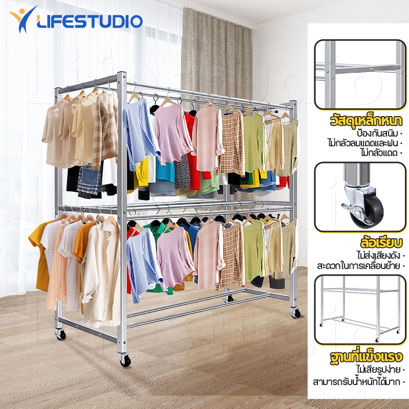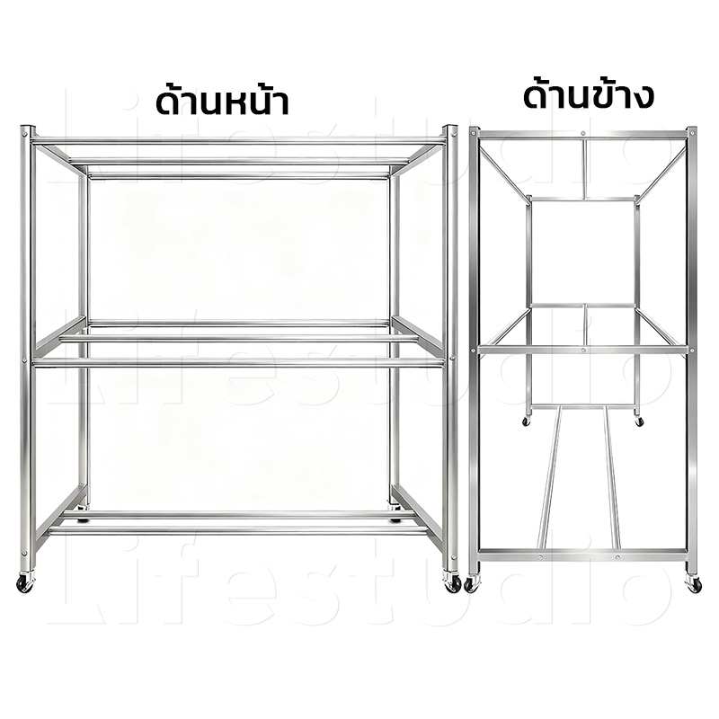 Life ราวตากผ้า มีล้อ 2ชั้น 8แท่ง เสาเหล็กเหลี่ยม ราวสนามเหล็ก เหมาะสำหรับใช้ในร่มและกลางแจ้ง สะดวกต่อการเคลื่อนย้าย
