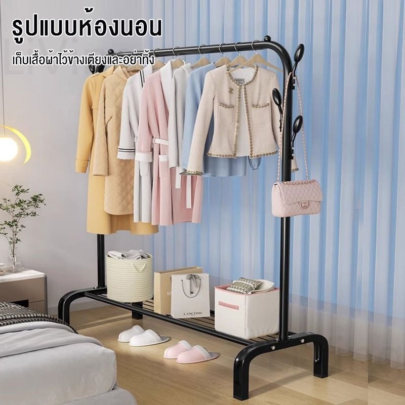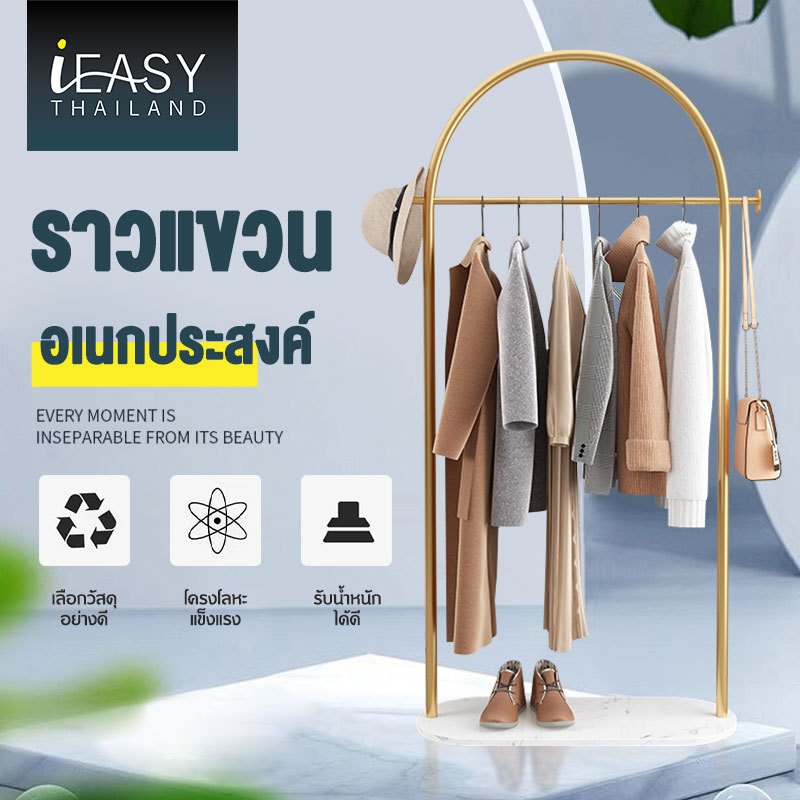 IEASY ราวแขวนผ้าตั้งพื้นห้องนอนเรียบง่าย ราวแขวนเสื้อข้างเตียง ราวแขวนเสื้อเข้ามุมสำหรับวางเสื้อผ้าตอนกลางคืน ไม่กินพื้น