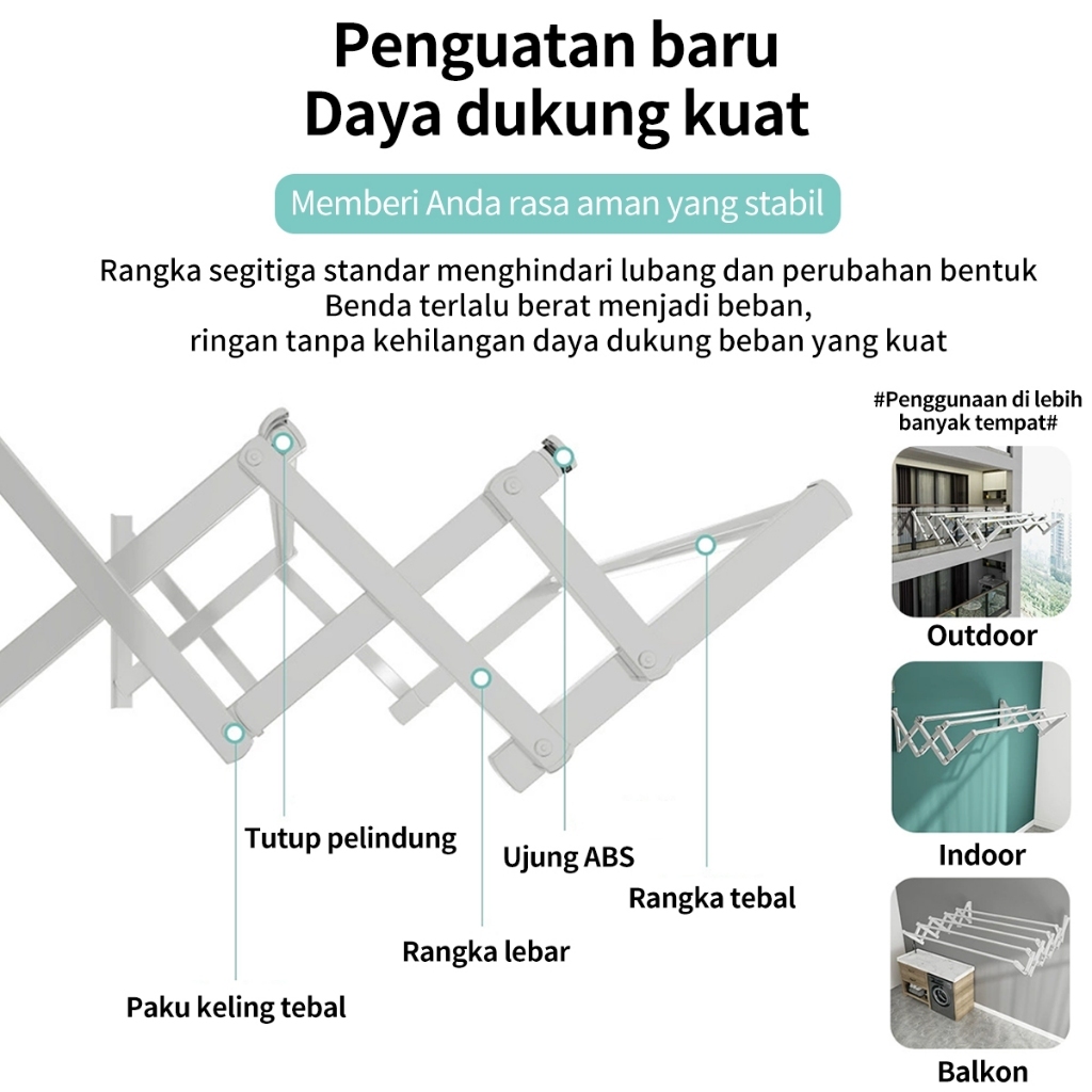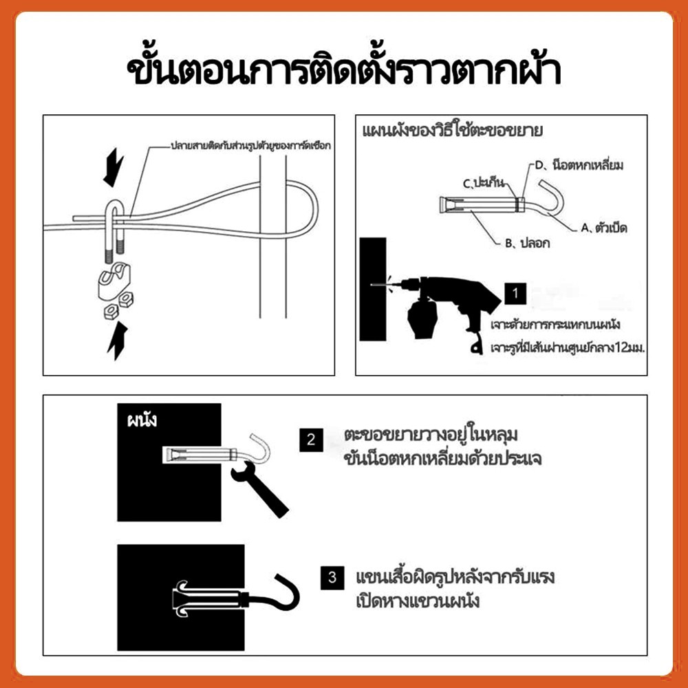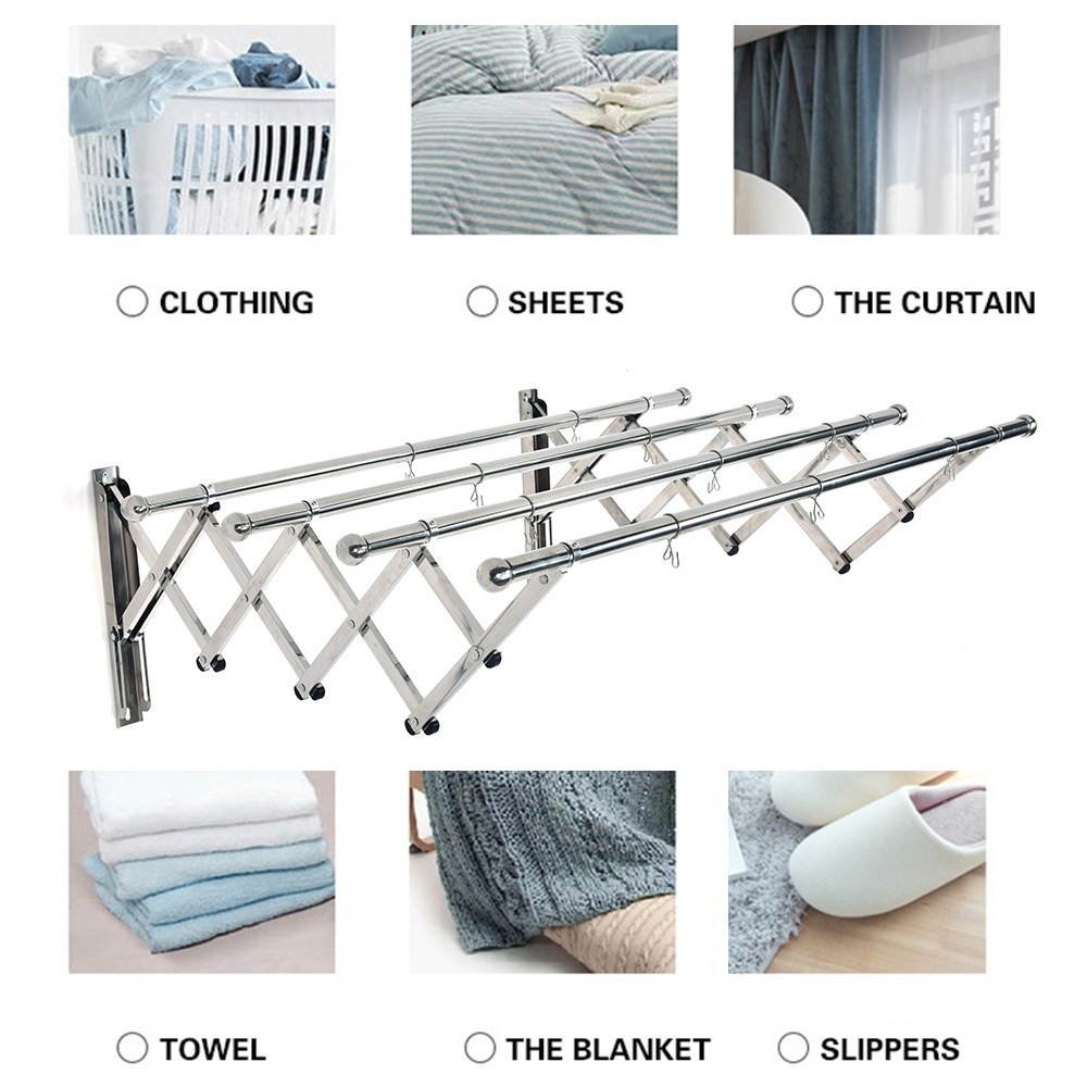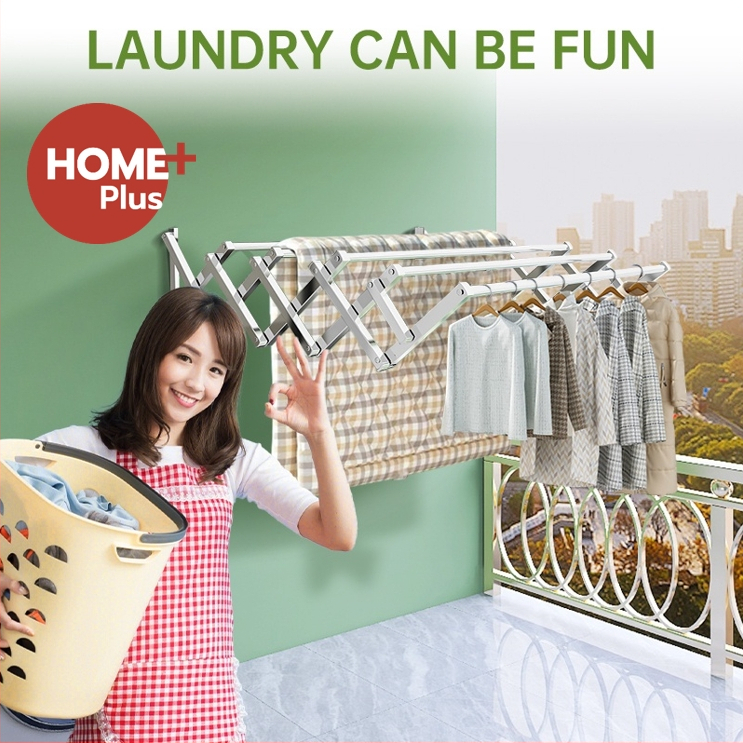 Homeplus ราวตากผ้าติดผนัง สแตนเลส ยืดหดได้ง่าย แขวนเสื้อผ้าได้มากกว่า 50 ตัว รับน้ำหนัก 100KG ใช้ได้ทั้งในบ้านและนอกบ้าน