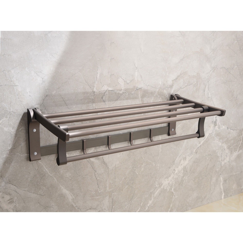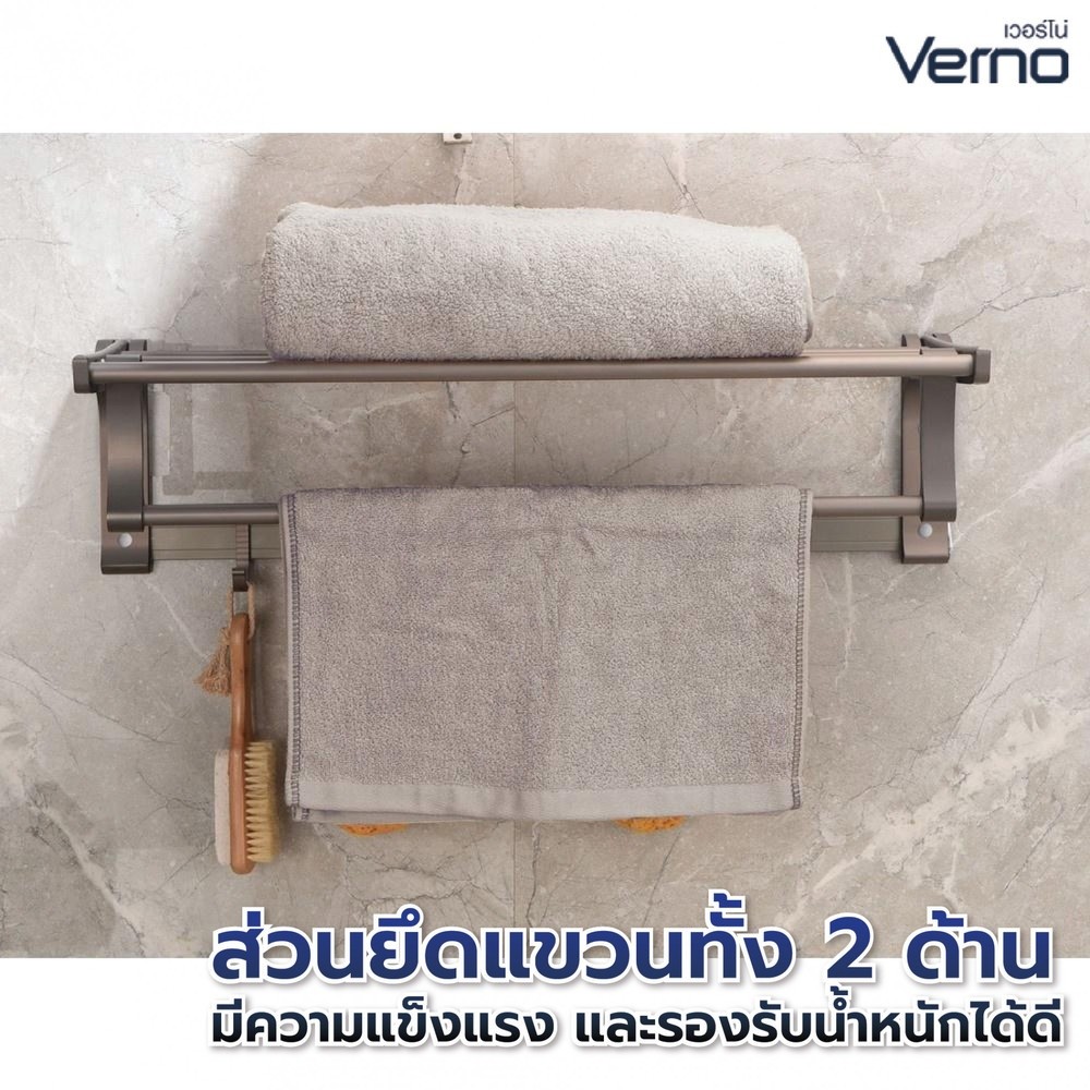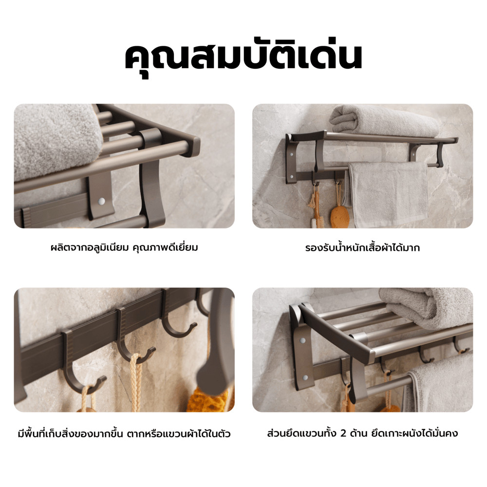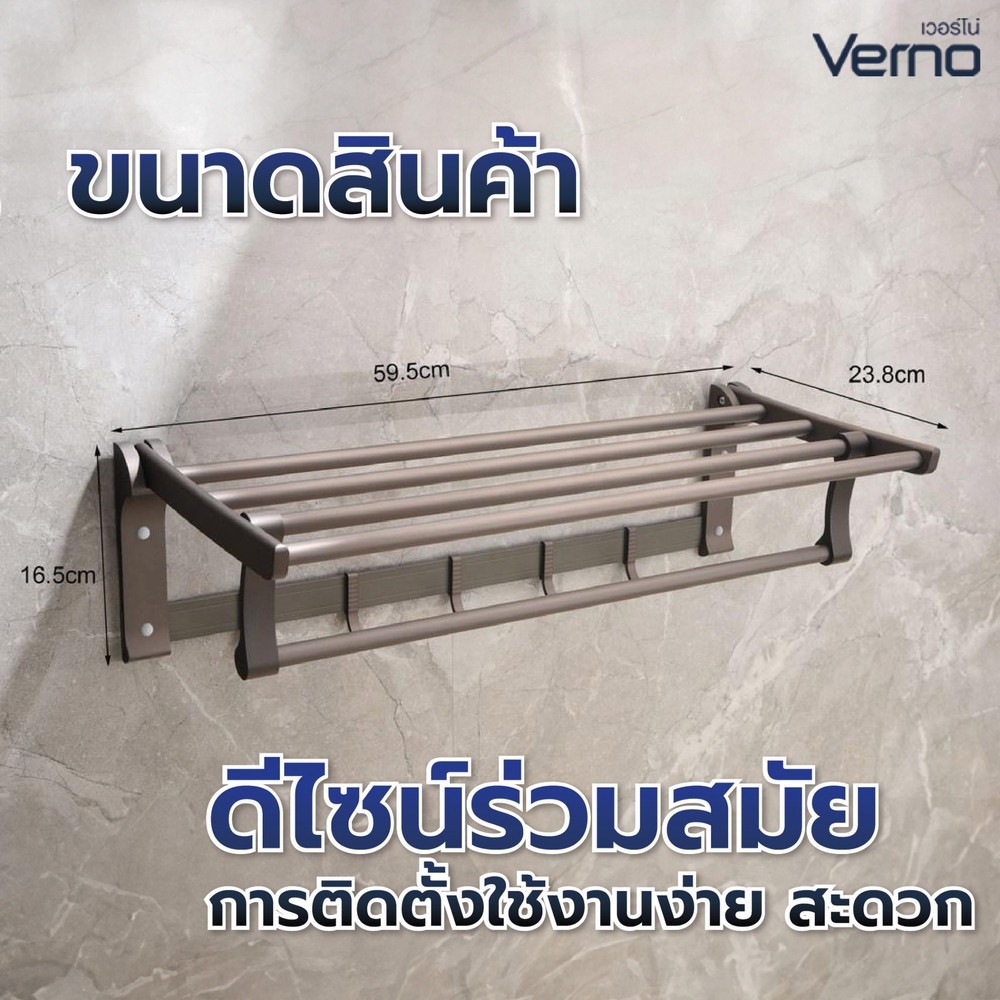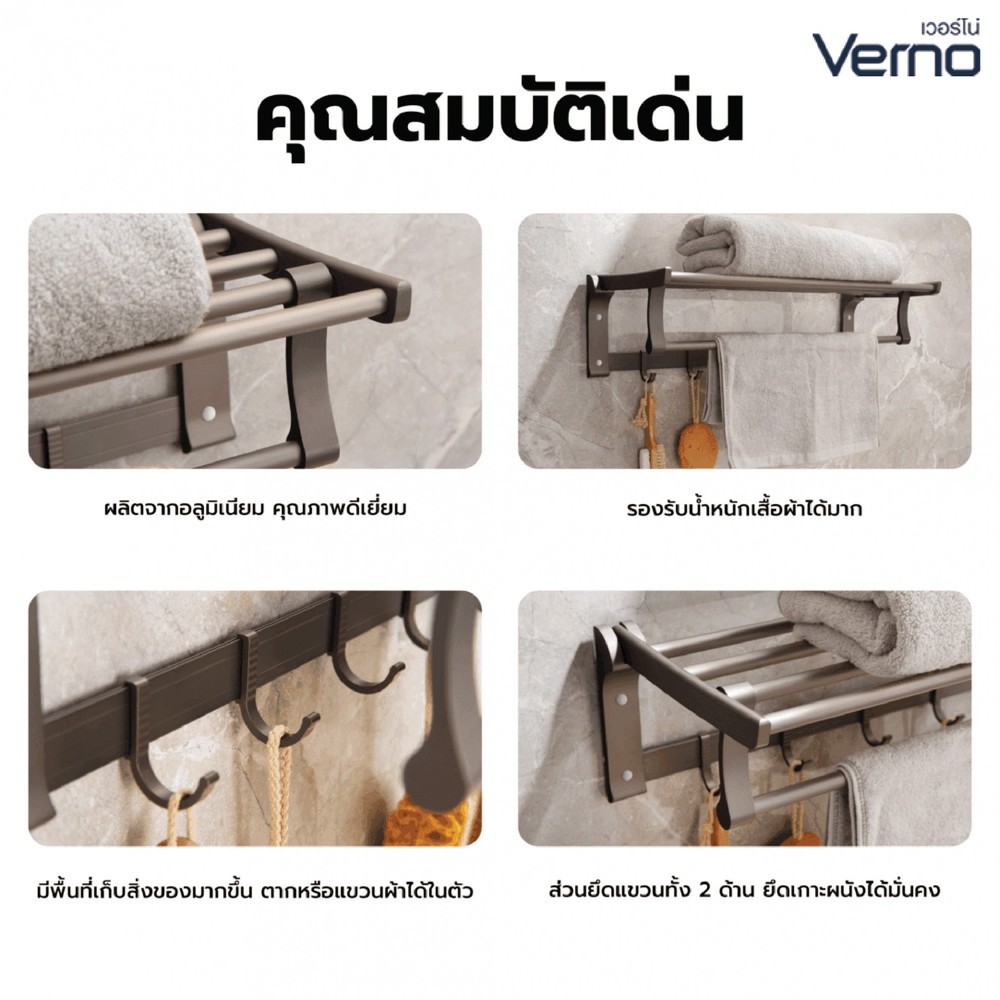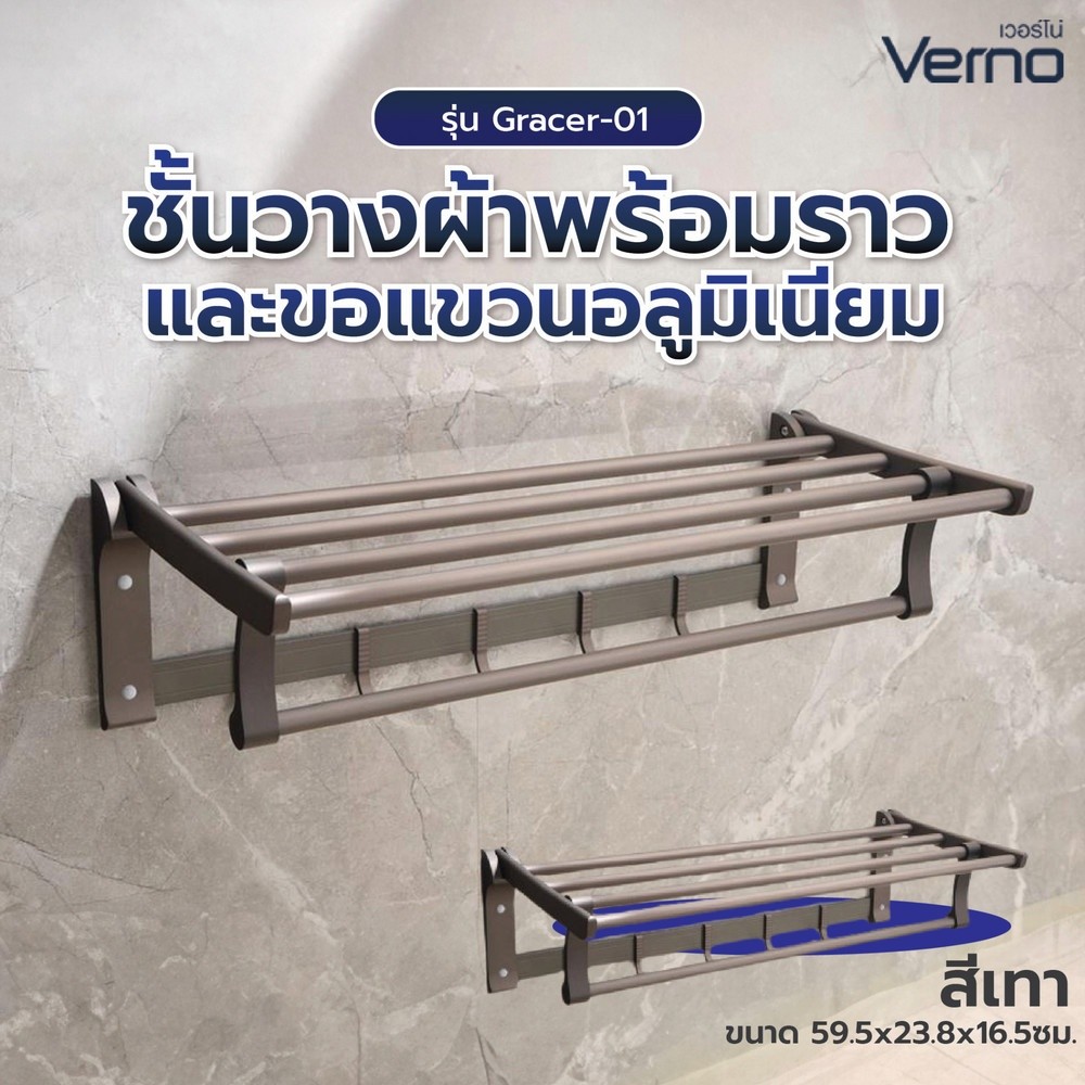 GlobalHouse Verno ชั้นวางผ้าพร้อมราวและขอแขวนอลูมิเนียม รุ่น Gracer-01 ขนาด 59.5×23.8×16.5ซม. สีเทา สินค้าของแท้คุณภาพดี