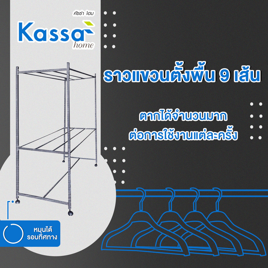 KASSA HOME ราวแขวนตั้งพื้น 9 เส้น 1.7 ม. เหล็ก ขนาด 150 x 60 x 170 ซม. สีเทา