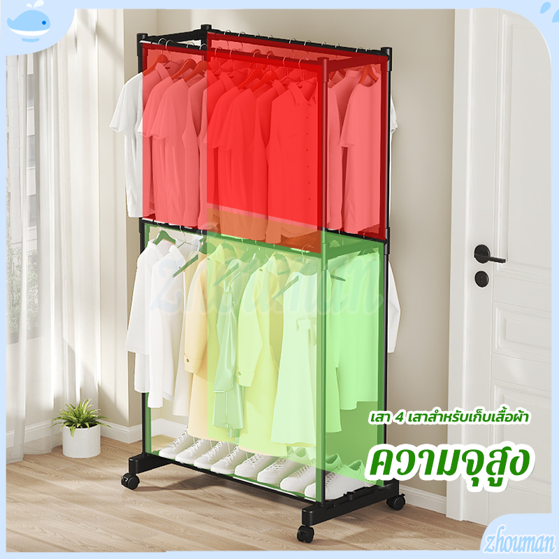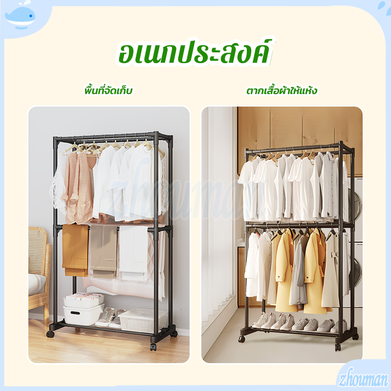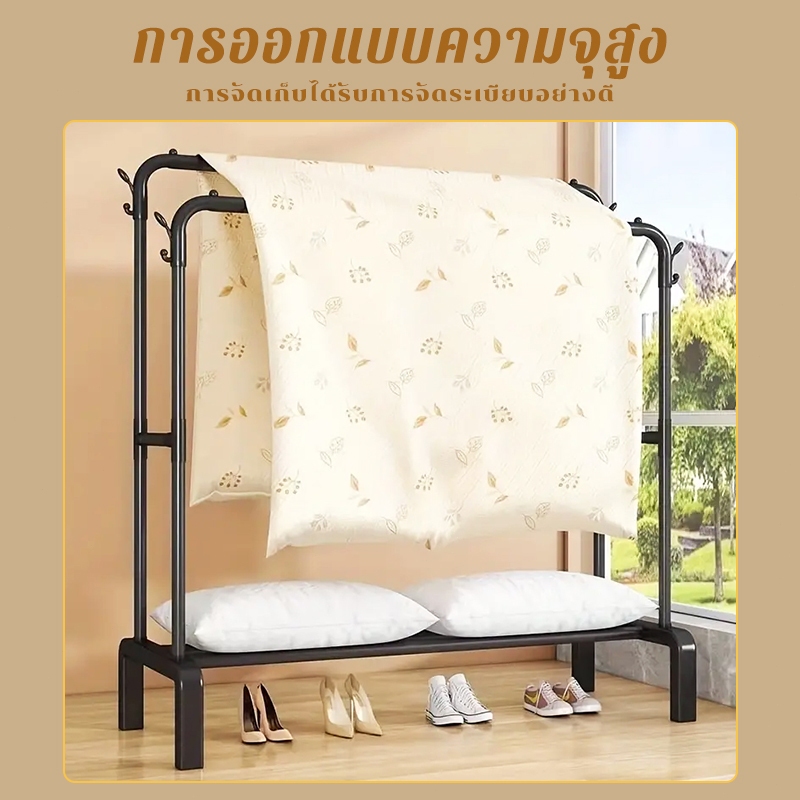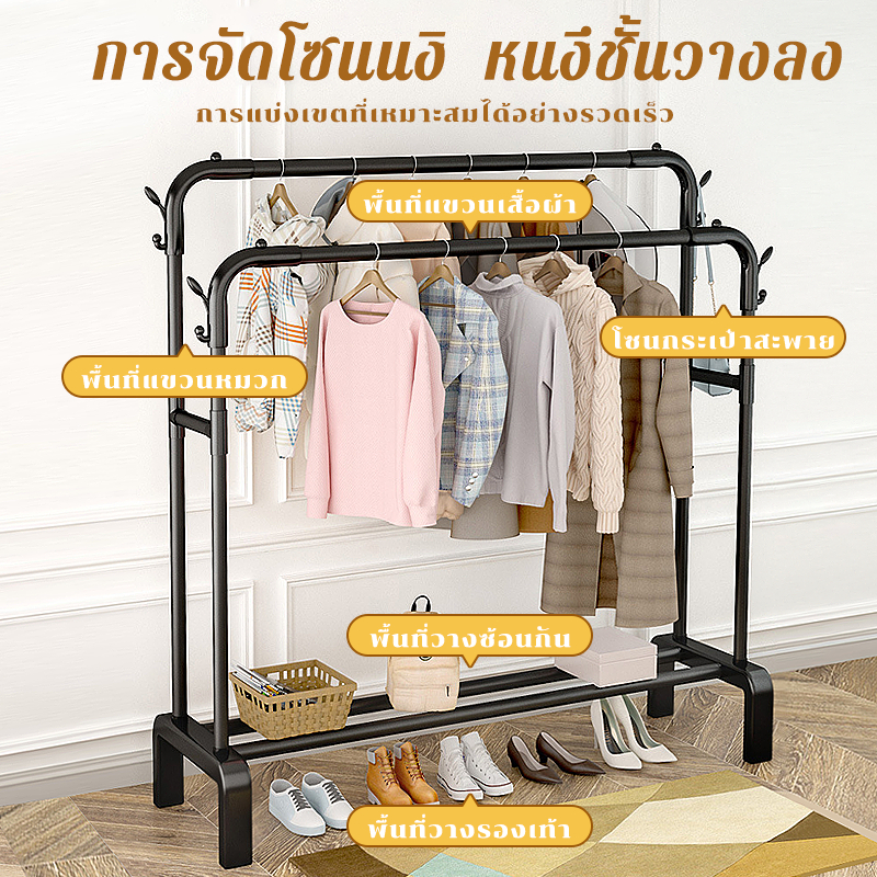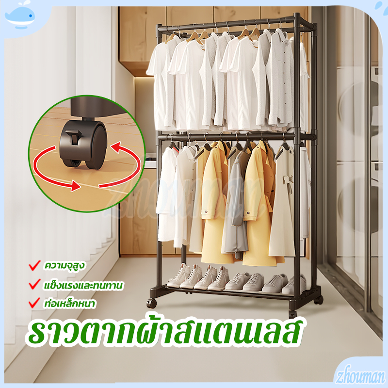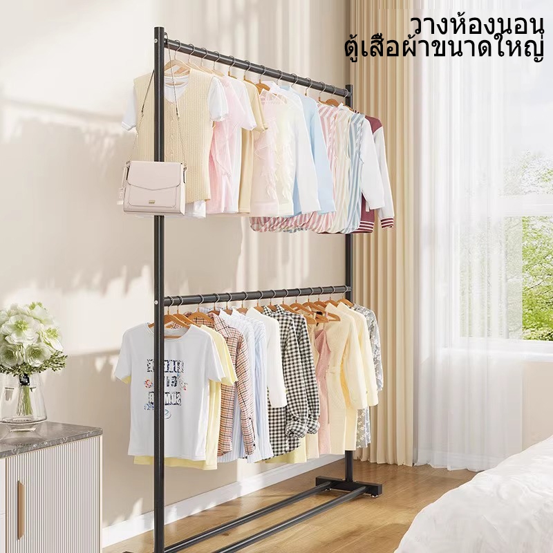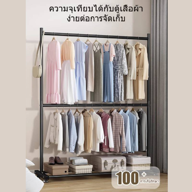 ราวแขวนเสื้อผ้าสองชั้น ราวตากผ้า สามารถวางไว้ที่ระเบียงได้ ในห้องนอน มีล้อ ง่ายต่อการเคลื่อนย้าย ติดตั้งง่าย