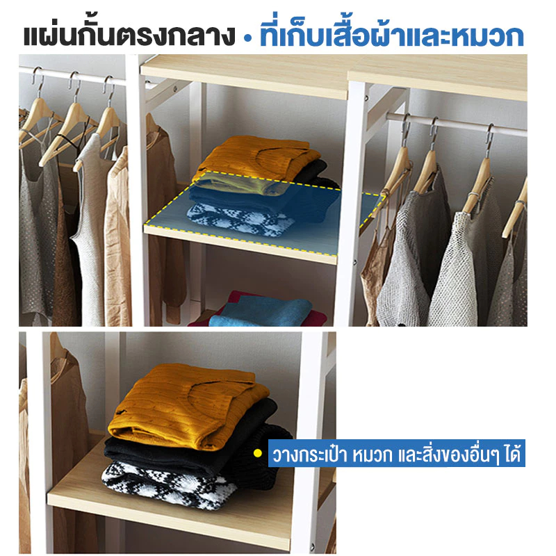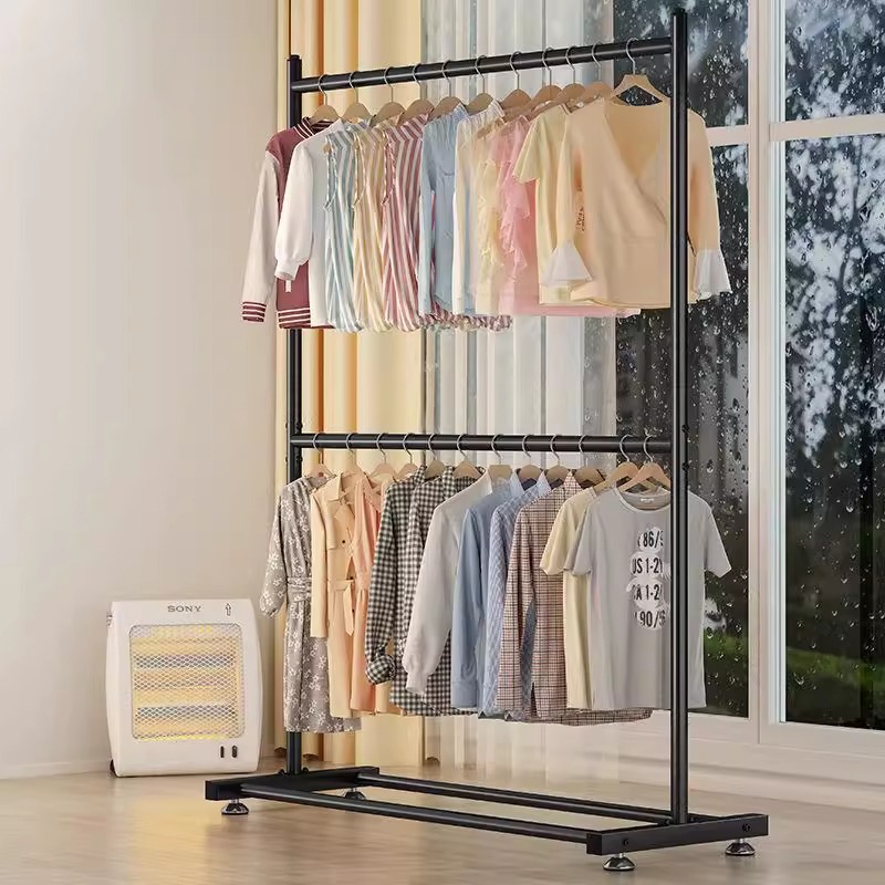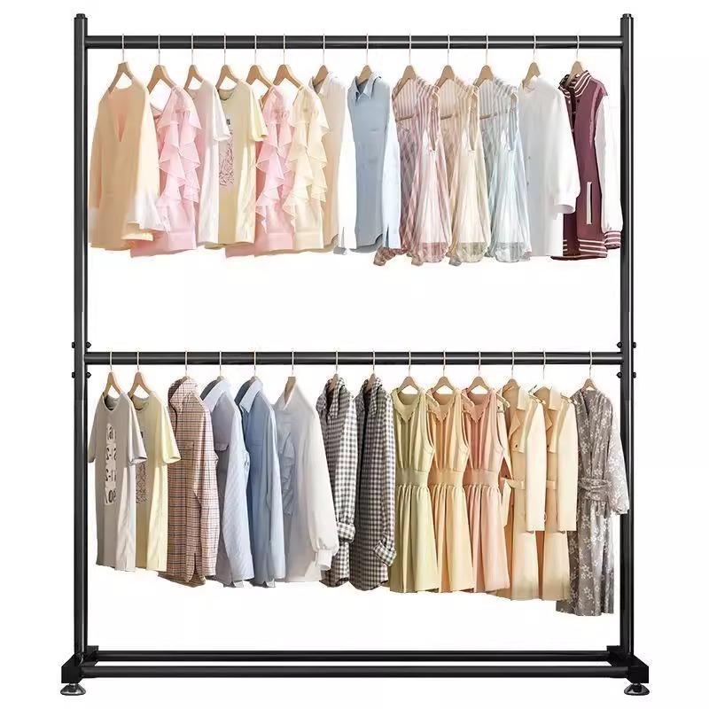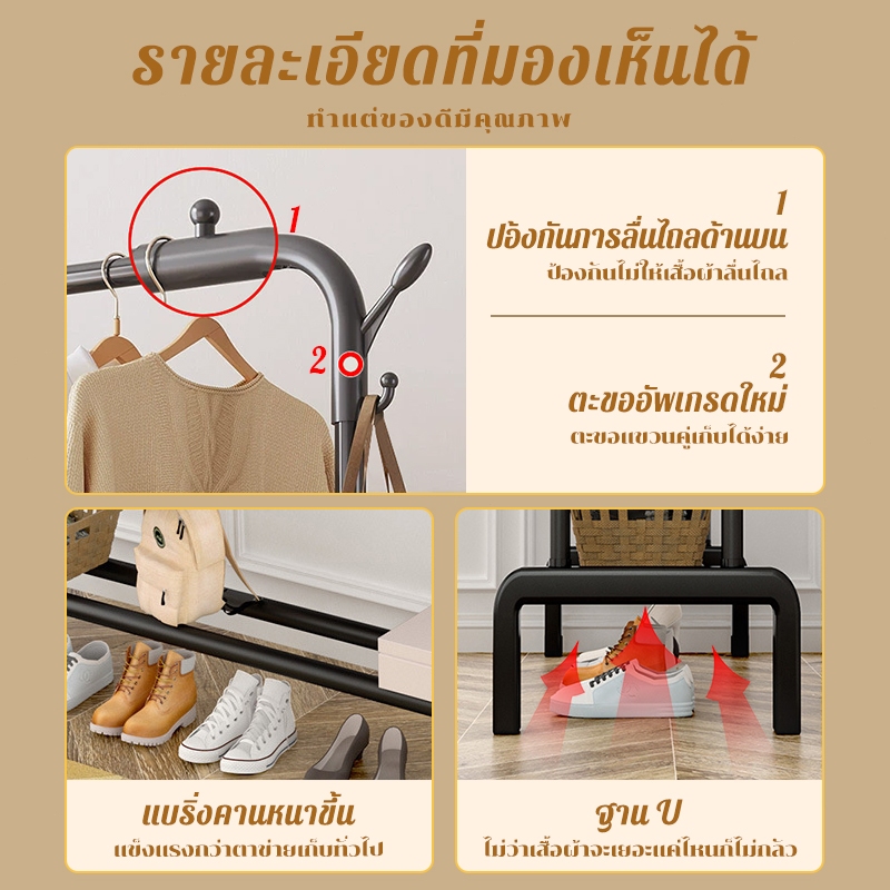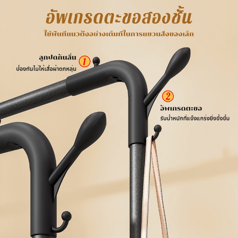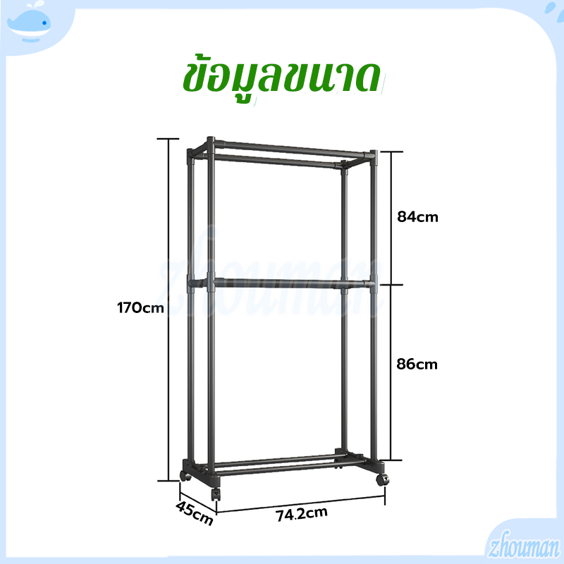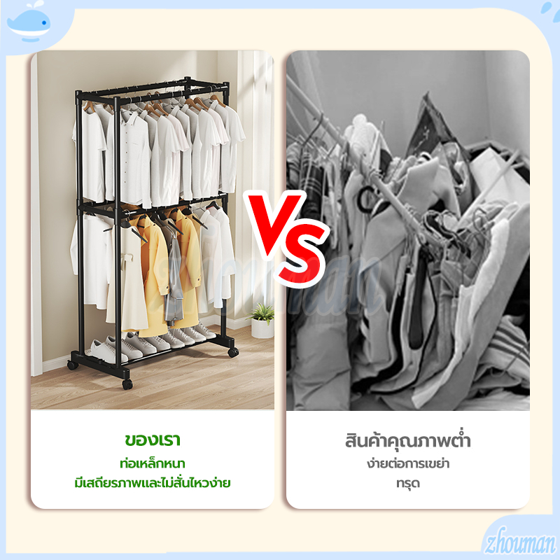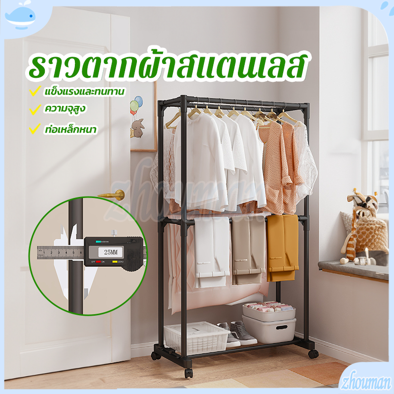 ราวแขวนเสื้อผ้าสองชั้น ราวตากผ้า สามารถวางไว้ที่ระเบียงได้ ในห้องนอน มีล้อ ง่ายต่อการเคลื่อนย้าย ติดตั้งง่าย