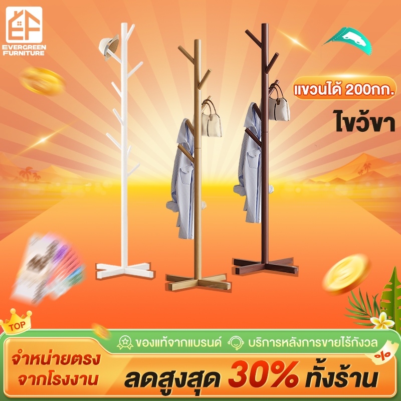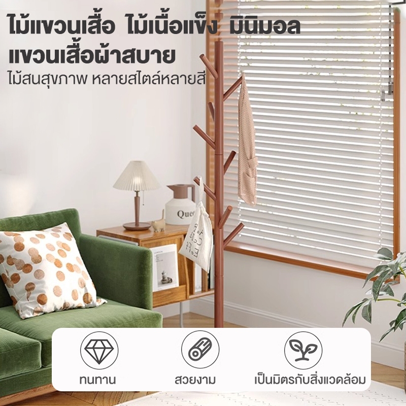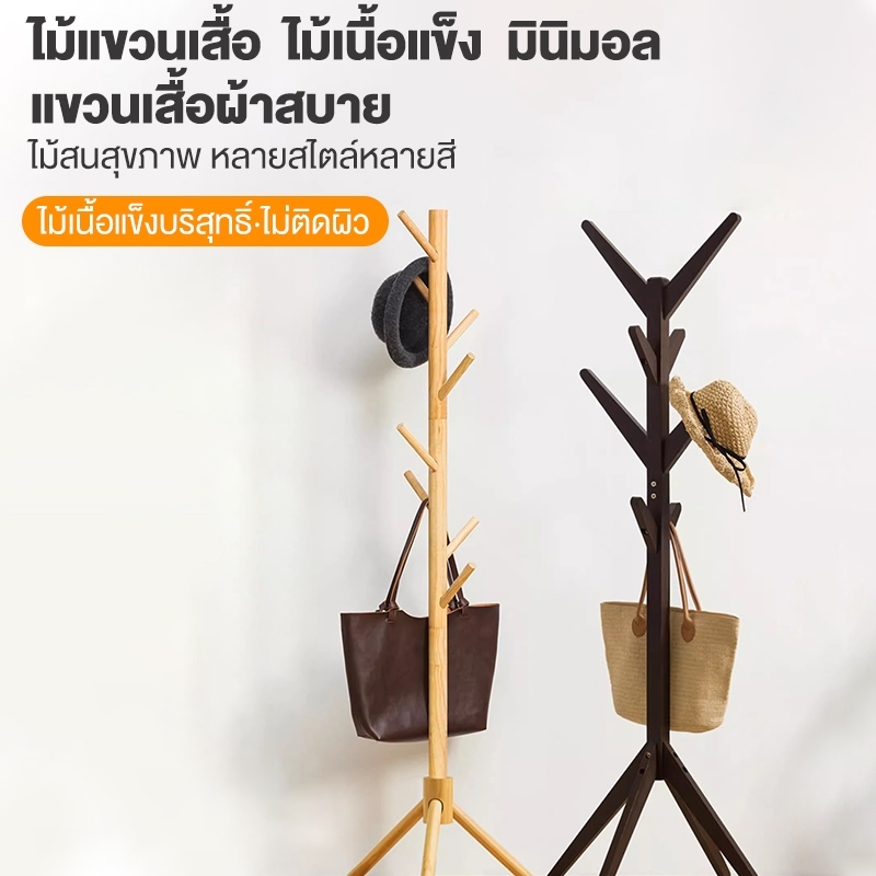 ราวแขวนเสื้อผ้า 175cm ราวแขวนเสื้ออเนกประสงค์ ที่เกระเป๋บแขวน 3 สี ไม้เนื้อแข็ง ฐานไม้กางเขน แขวนเสื้อได้ สะดวก มินิมอล