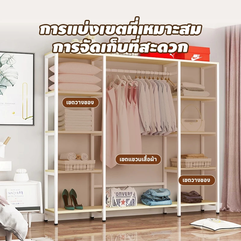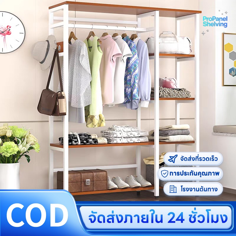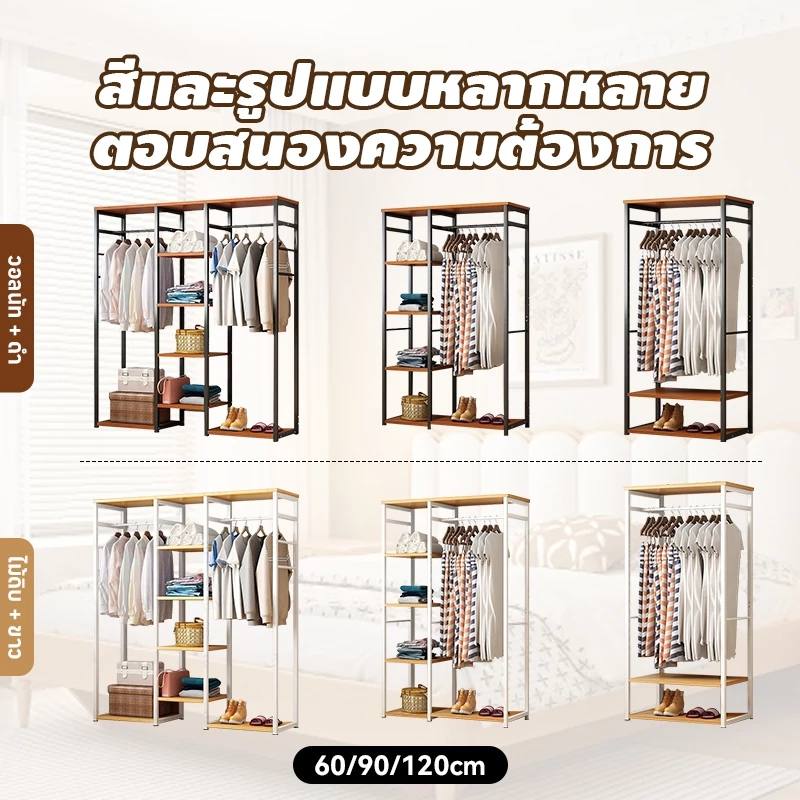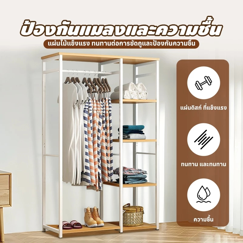 ราวแขวนผ้า ไม้ ตู้เสื้อผ้า ราวตากผ้า ราวแขวนเสื้อผ้า หลายช่อง/ความจุมาก ราวแขวนเสื้ออเนกประสงค์