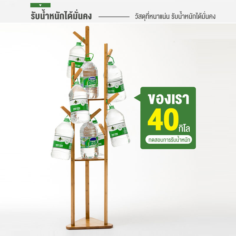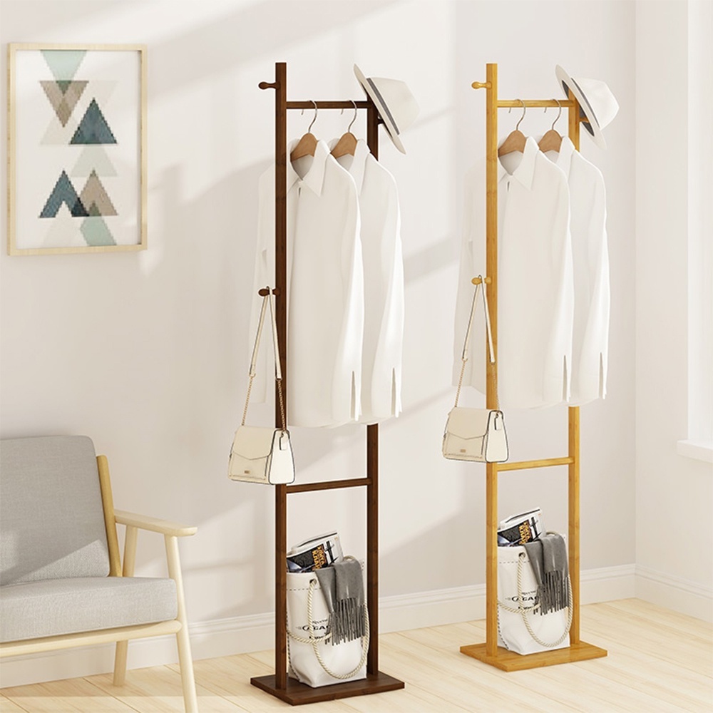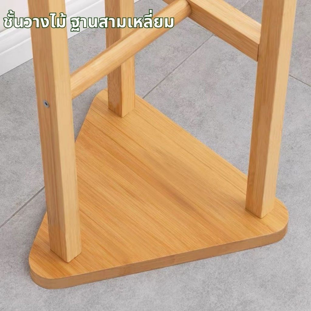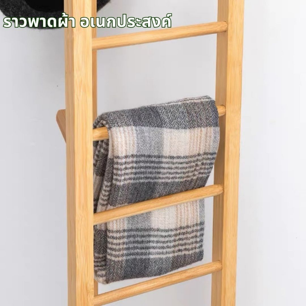 ราวแขวนผ้าไม้ ที่แขวนกระเป๋า ไม้ไผ่ แขวนหมวก/เสื้อผ้า อเนกประสงค์ ราวไม้แขวนหมวก แบบตั้งพื้น ชั้นวาง+ราวไม้ สูง175 ซม.