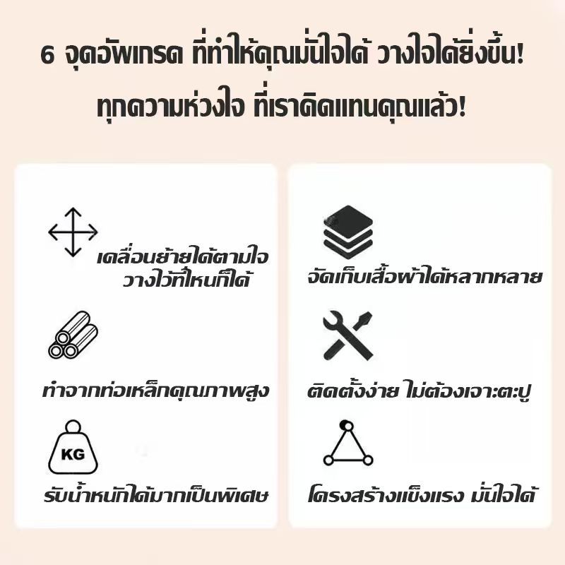 ราวแขวนเสื้อผ้า ราวตากผ้า ราวแขวนผ้าในห้องนอน มีล้อในตัว สไตล์เรียบง่าย ติดตั้งง่าย