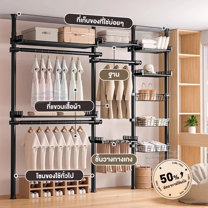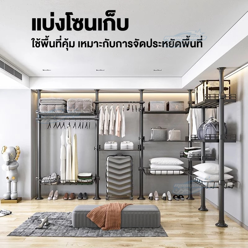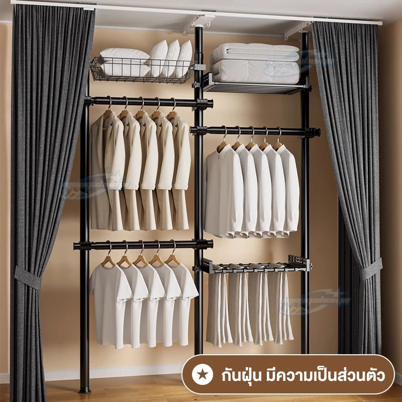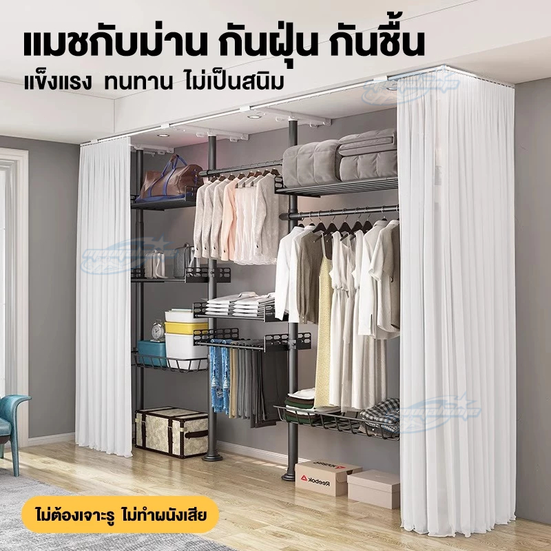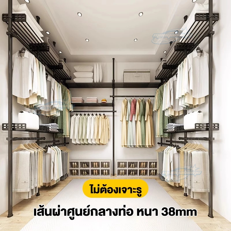 ราวแขวนเสื้อ ราวตากผ้า DIY ราวแขวนผ้า ราวแขวนไม่ต้องเจาะ ชุดใหญ่ ขายดี (คลิ๊กเลือกสี) แถมฟรี วิงแขวนไม้สอยผ้า