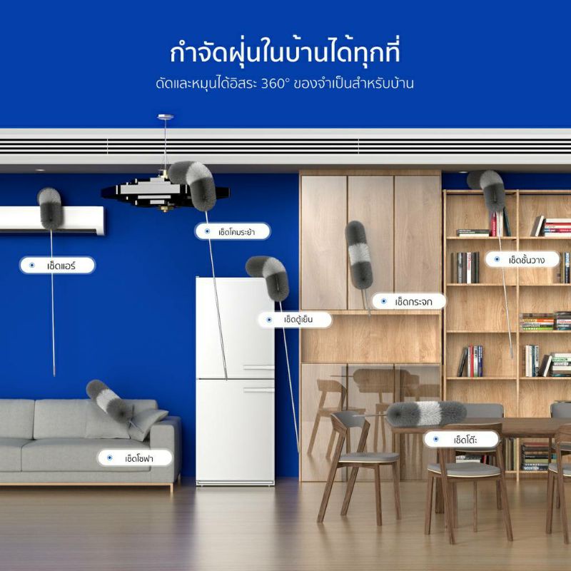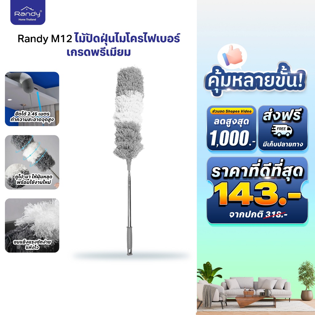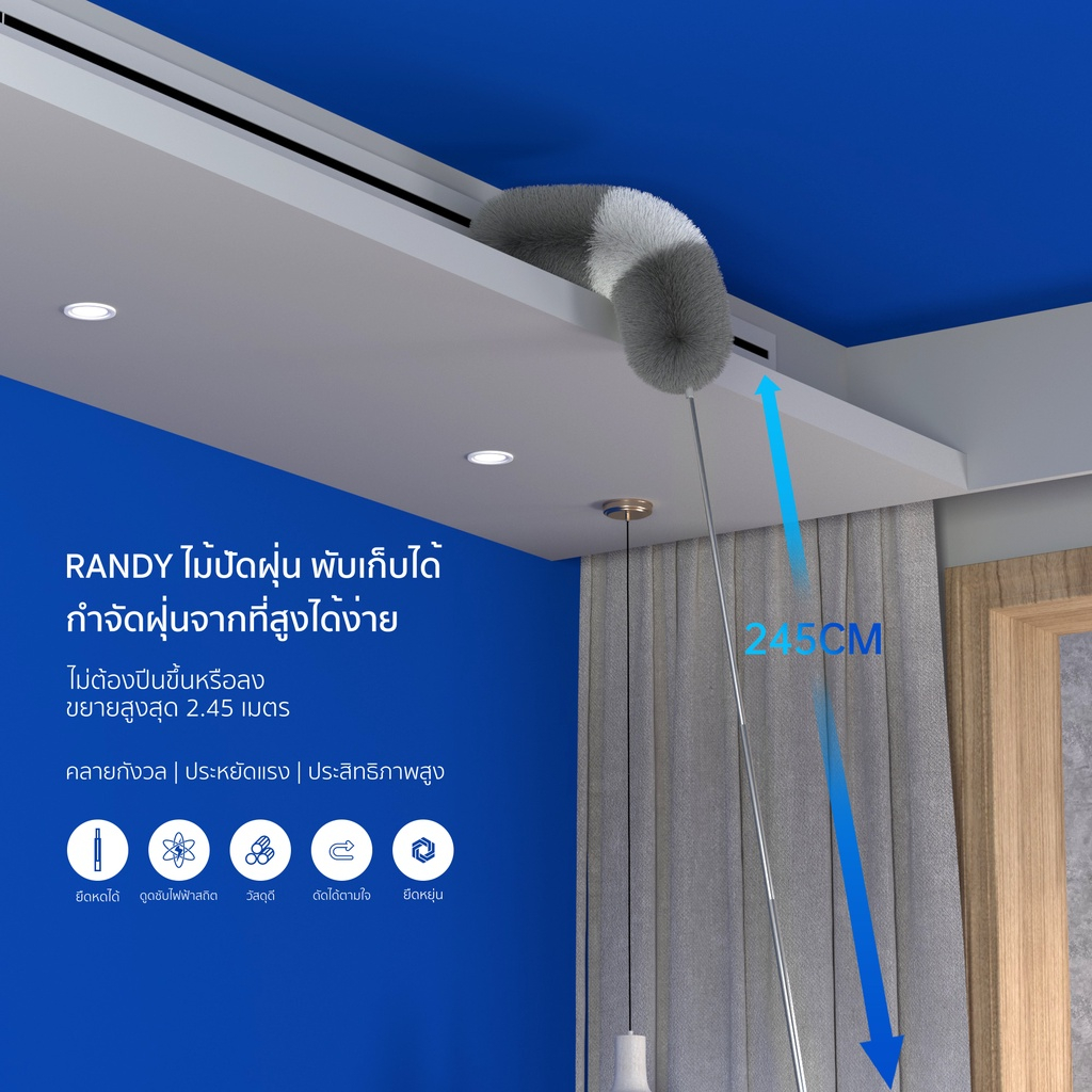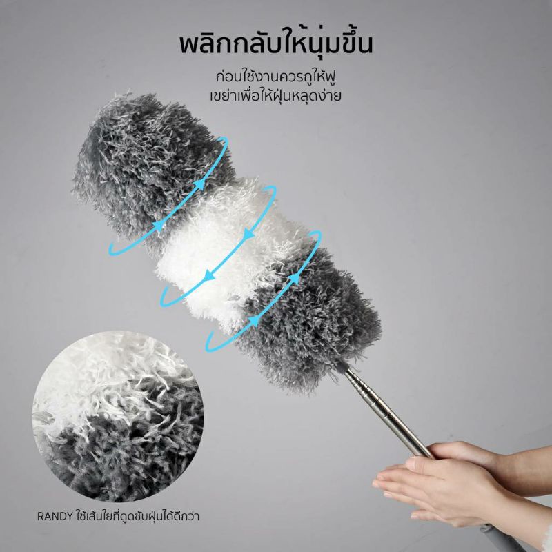 [🔥โค้ดลด ]RANDY ไม้ปัดฝุ่น ไมโครไฟเบอร์ด้ามปรับความยาวได้ 2.4เมตร แปรงปัดฝุ่น ดัดโค้งงอได้ ซักได้