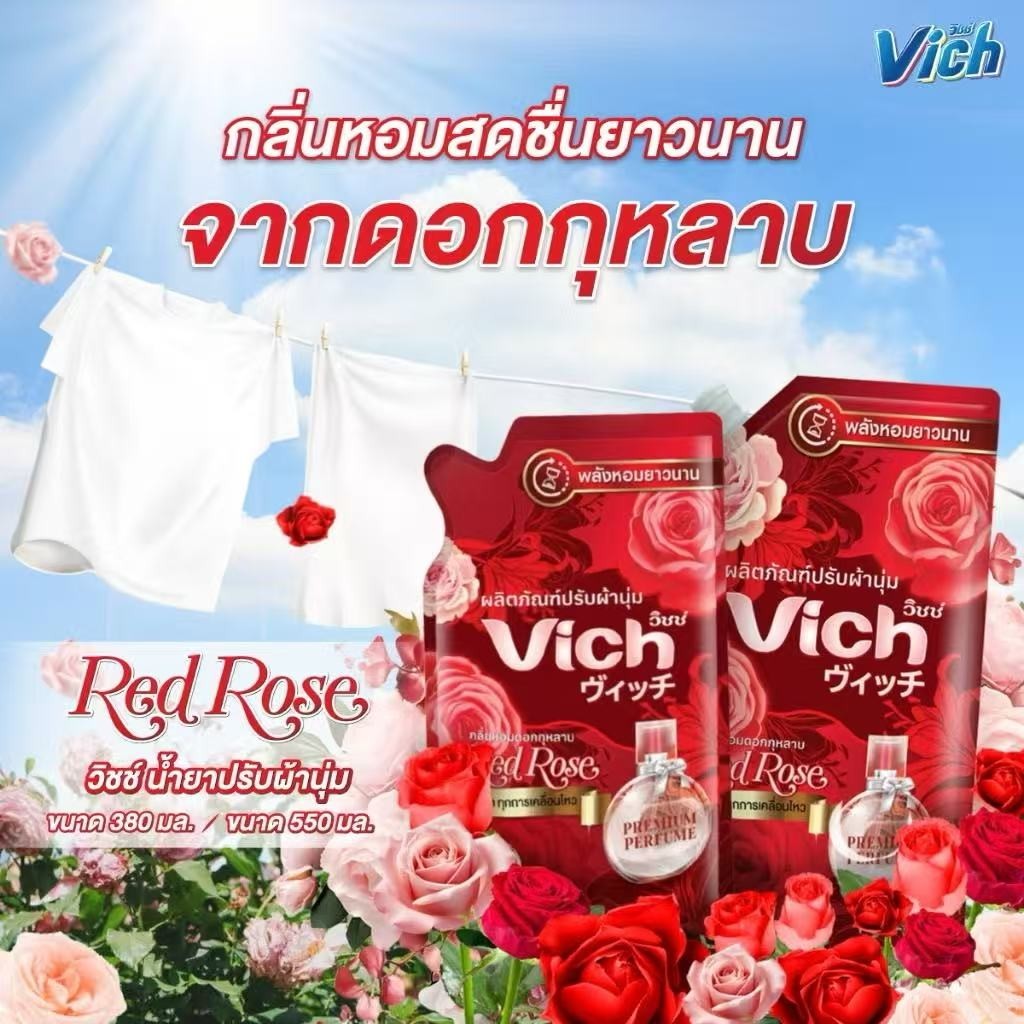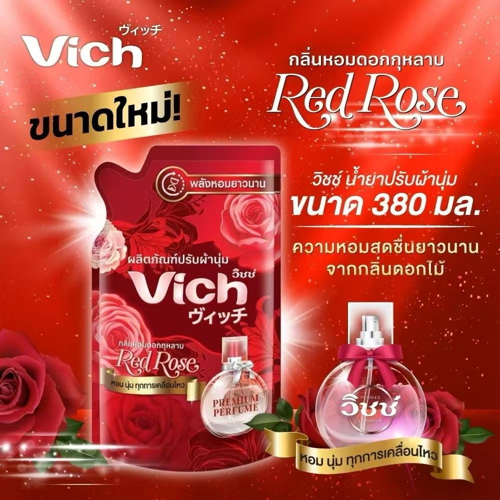 น้ำยาปรับผ้านุ่ม Vich 380 มล. หอม นุ่ม ทุกการเคลื่อนไหว (มี 2 กลิ่นให้เลือก) กุหลาบ และ ลาเวนเดอร์