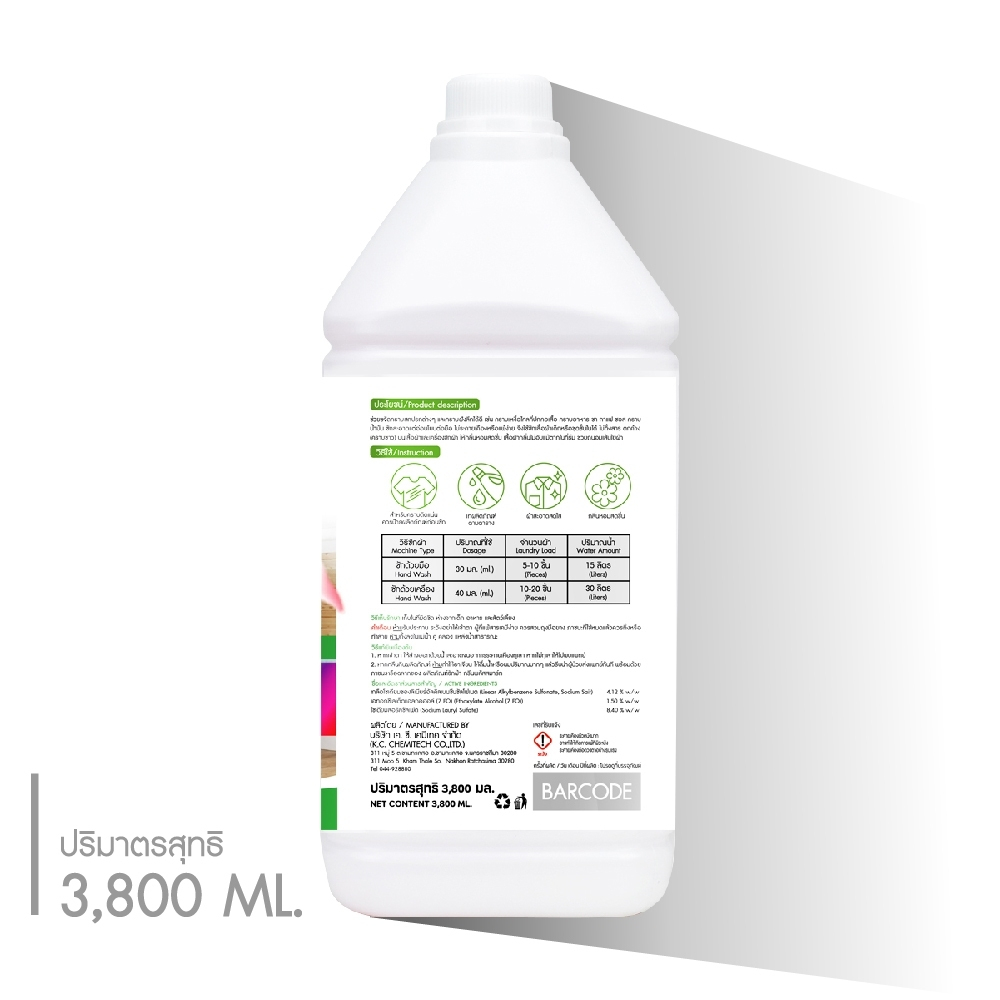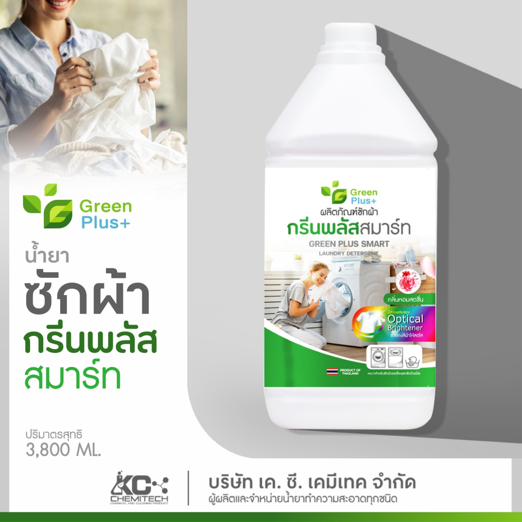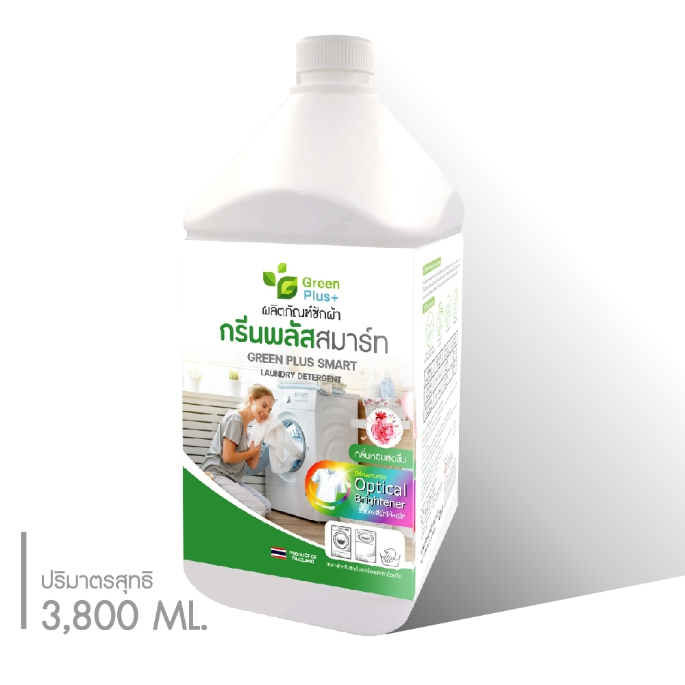 น้ำยาซักผ้า ผลิตภัณฑ์ซักผ้า กรีนพลัส สมาร์ท มีส่วนผสมของ Optical Brightener ช่วยให้ผ้าสีสดใส 3800 ml