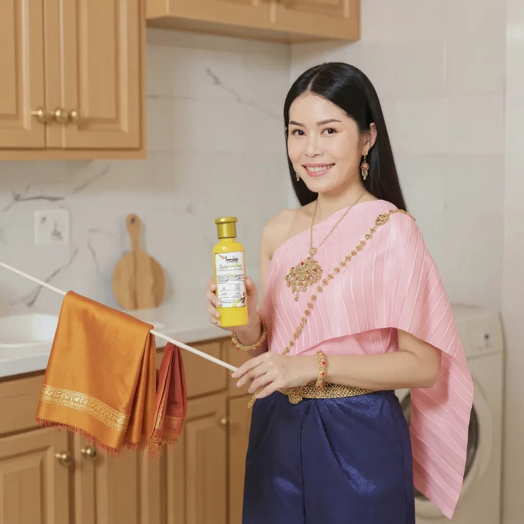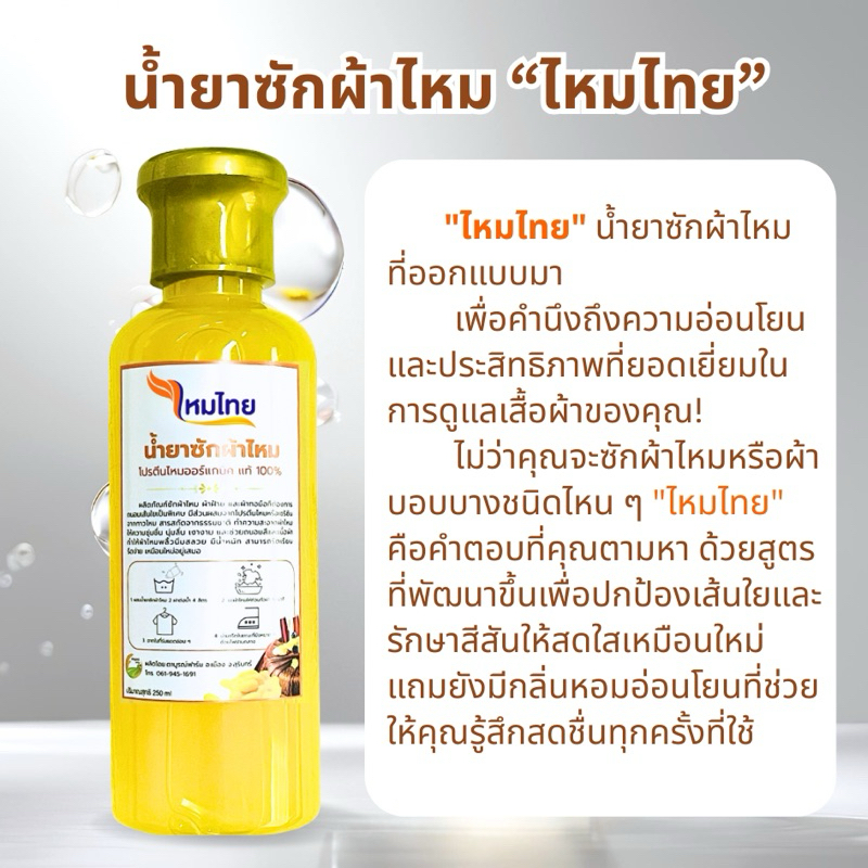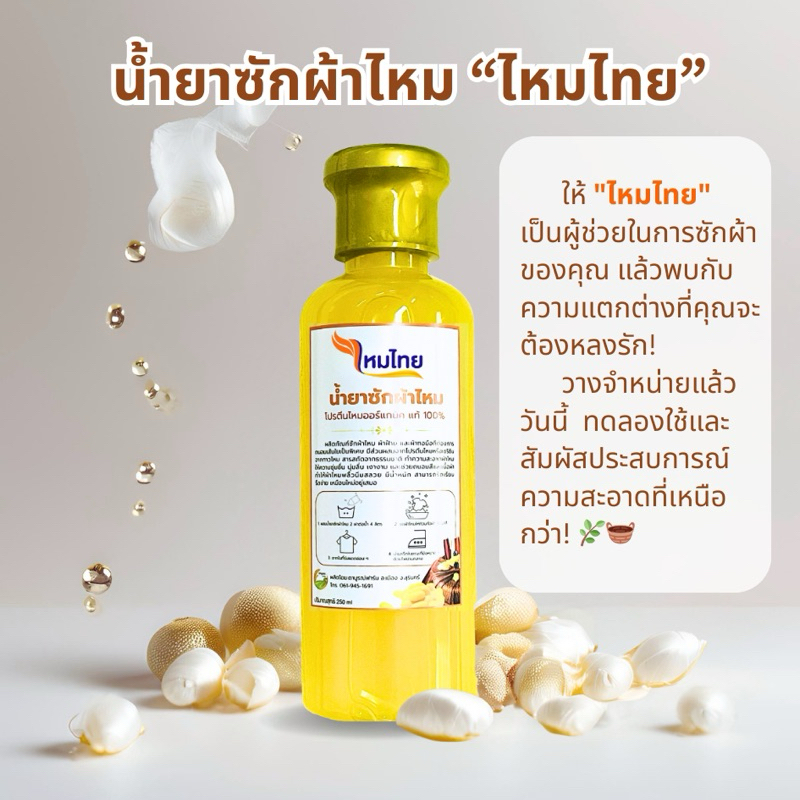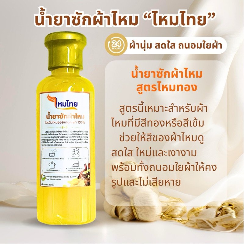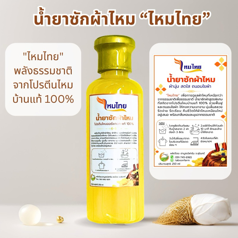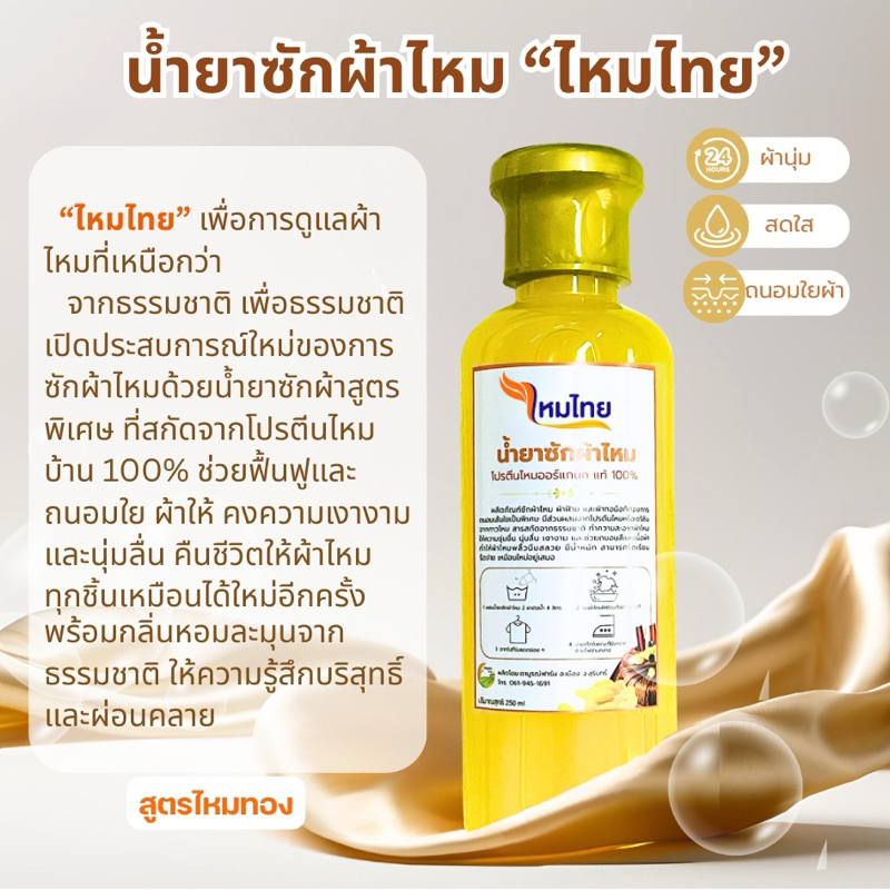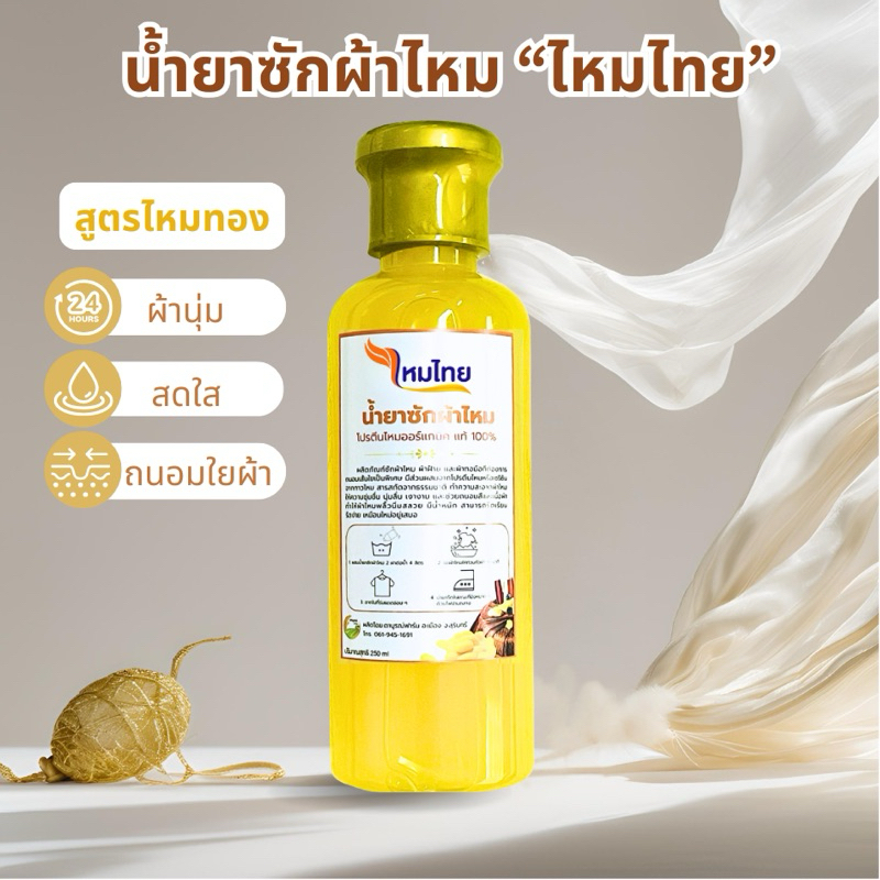 น้ำยาซักผ้าไหม สูตรไหมทอง 1ขวด ผ้านุ่ม สดใส ถนอมใยผ้า ตาบูรณ์ฟาร์ม