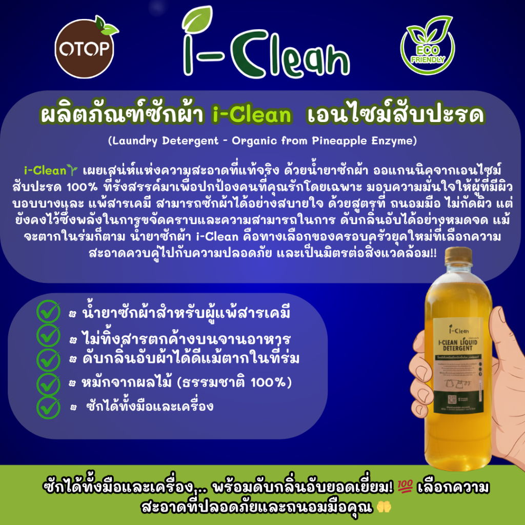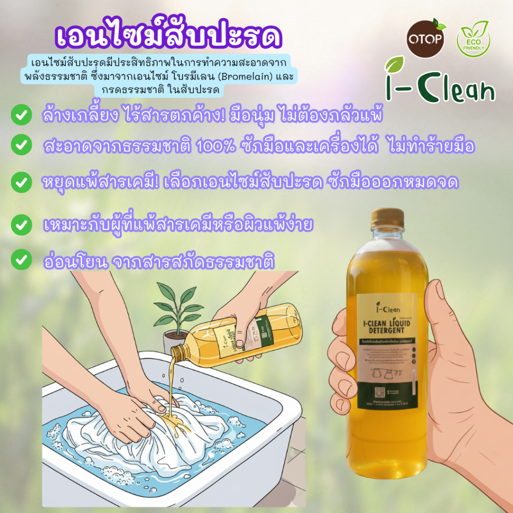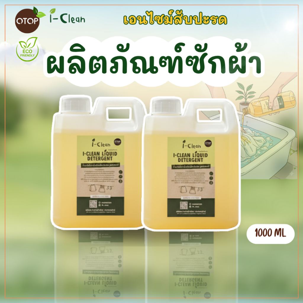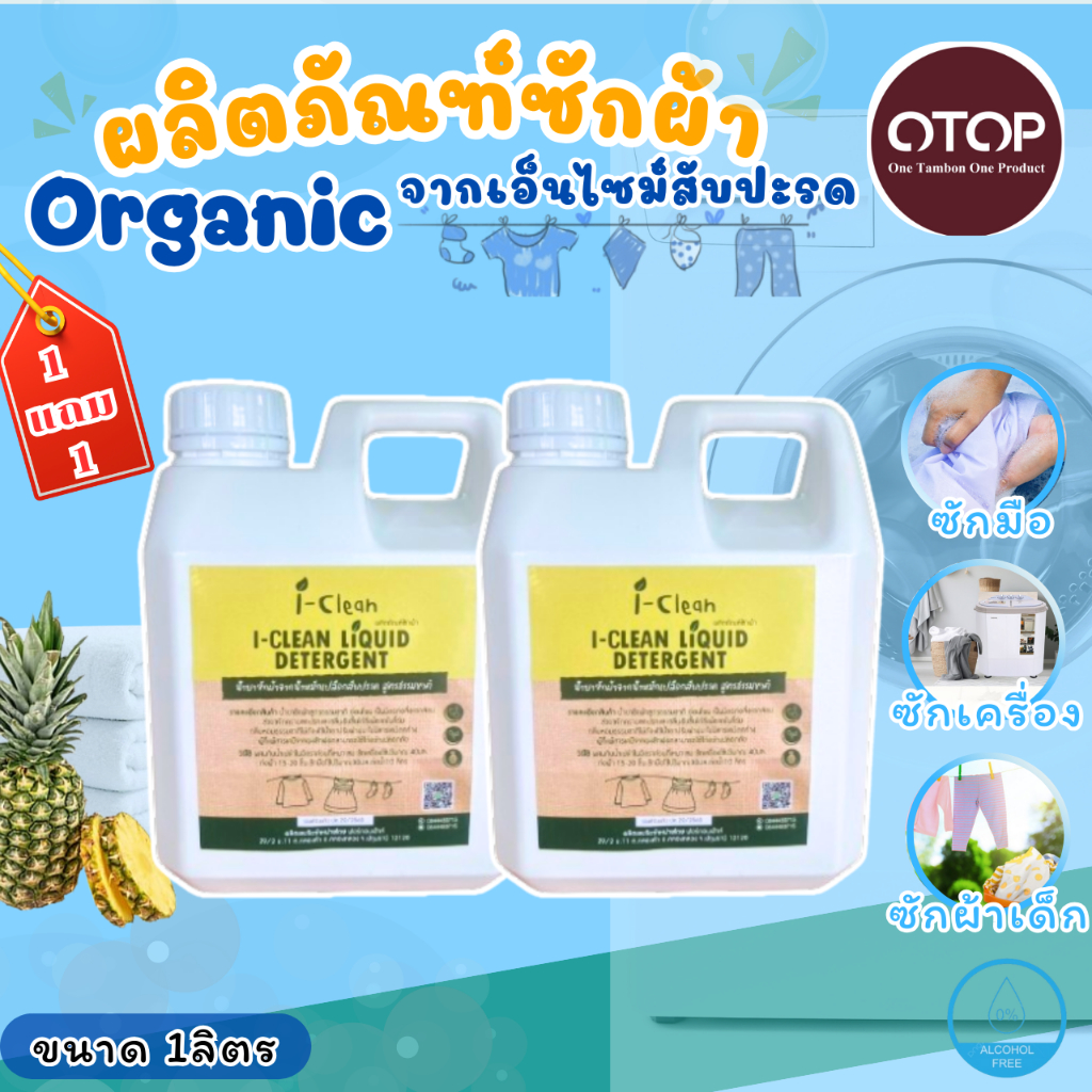 น้ำยาซักผ้า ขนาด 1 ลิตร (ซื้อ1 ฟรี1) น้ำยาซักผ้าไร้สารเคมี ดับกลิ่นอับผ้าได้ดีเเม้ตากในที่ร่ม ผู้เเพ้สารเคมีใช้