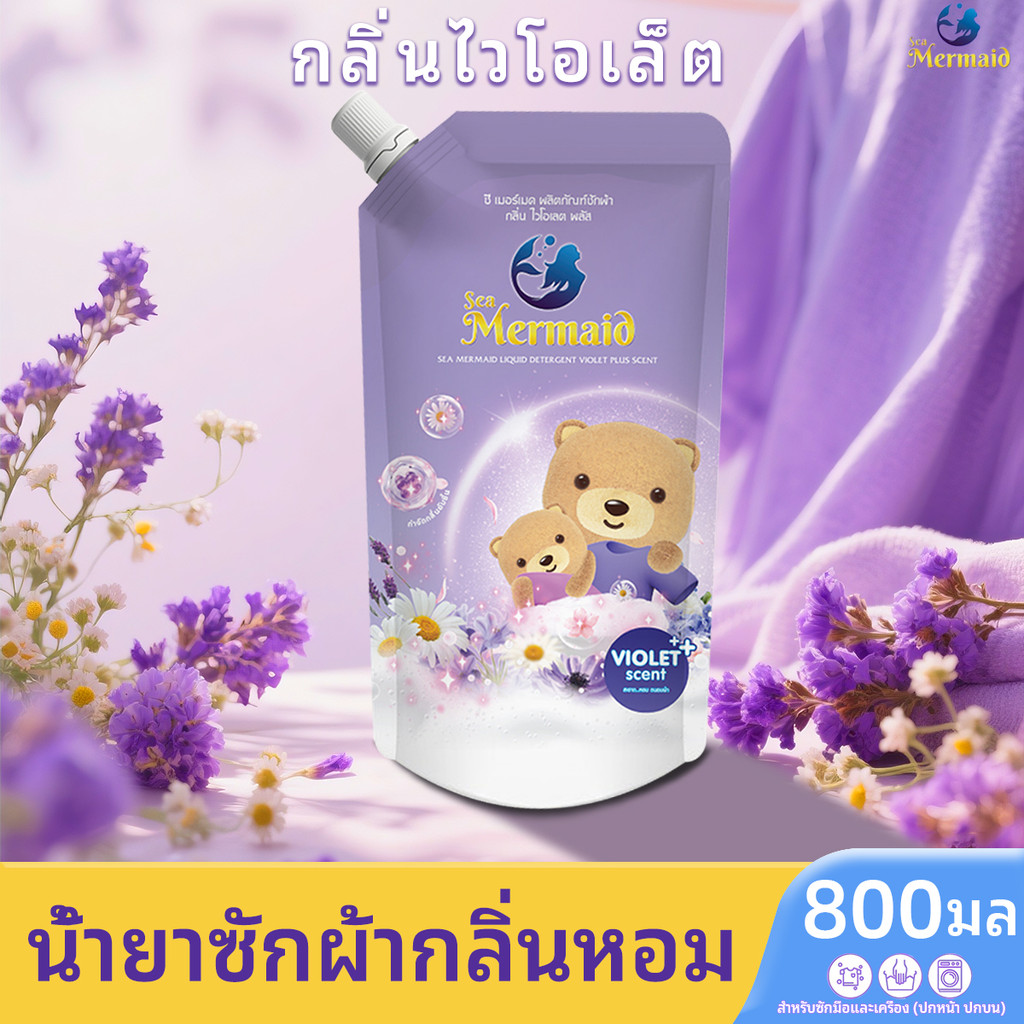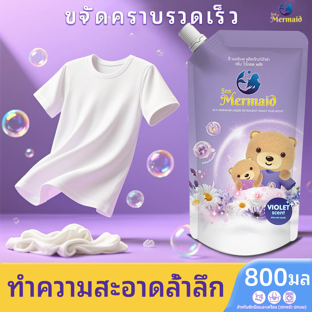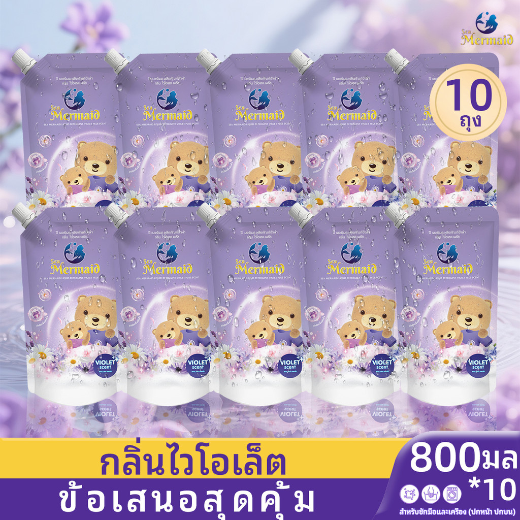 🪻【สีม่วง800มล.*10ถุง】🪻🪻8Lน้ําซักผ้าสูตรเข้มข้น ไวรัลใน shopee กลิ่นไวโอเล็ต น้ำยาชักผ้าsea mermaid น้ํายาซักผ้าที่หอมมาก น้ําซักผ้้าและปรับผ้านุ่มในตัว ทำความสะอาดล้ำลึก laundry detergent น้ำยาซักผ้าแบบถุง