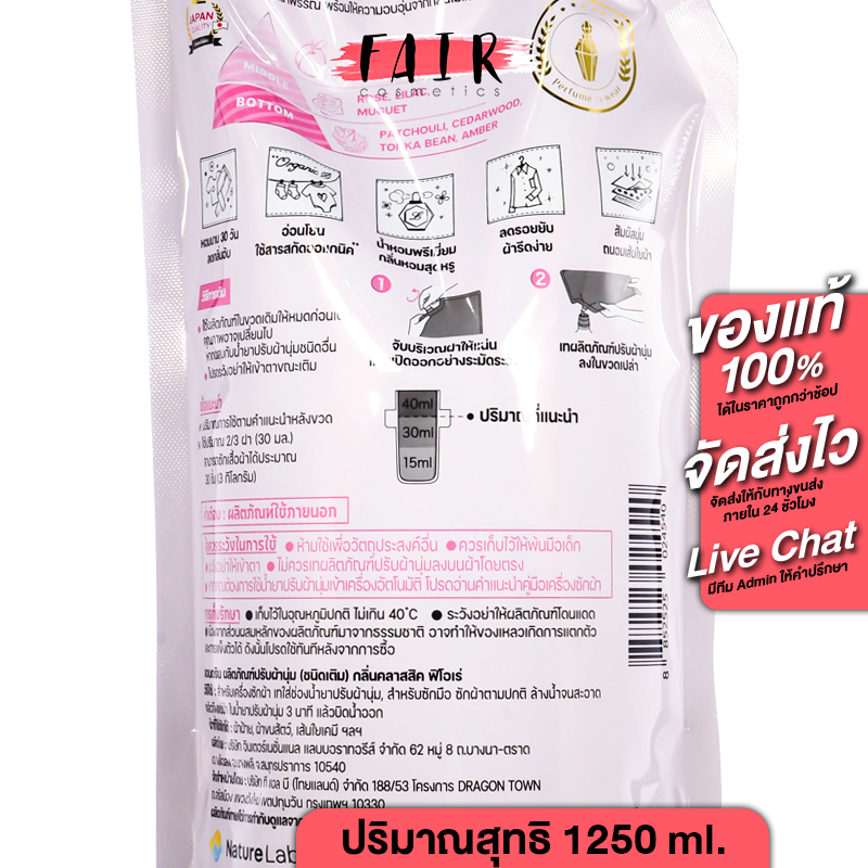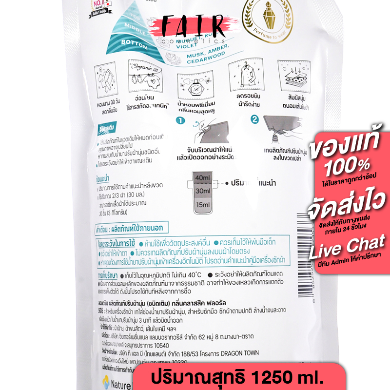 [ถุงใหญ่สุด] Laundrin Fabric Softener Classic Floral/Classic Fiore/Elegant Floral [1250 ml.][สินค้ามีให้เลือก 3 กลิ่น]