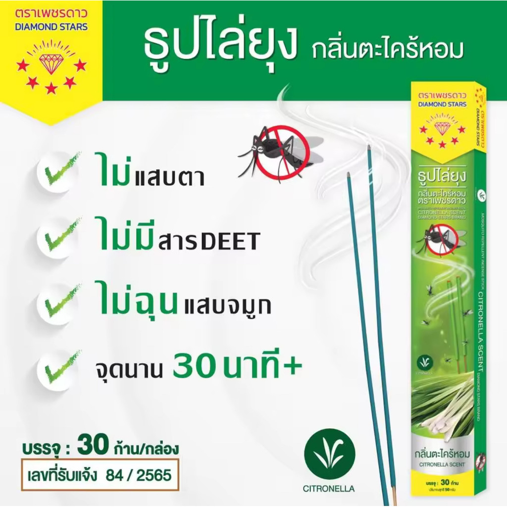 ธูปไล่ยุงกลิ่นหอมน้ำมันตะไคร้ธรรมชาติปลอดภัย100% 1ห่อมี 40ก้าน