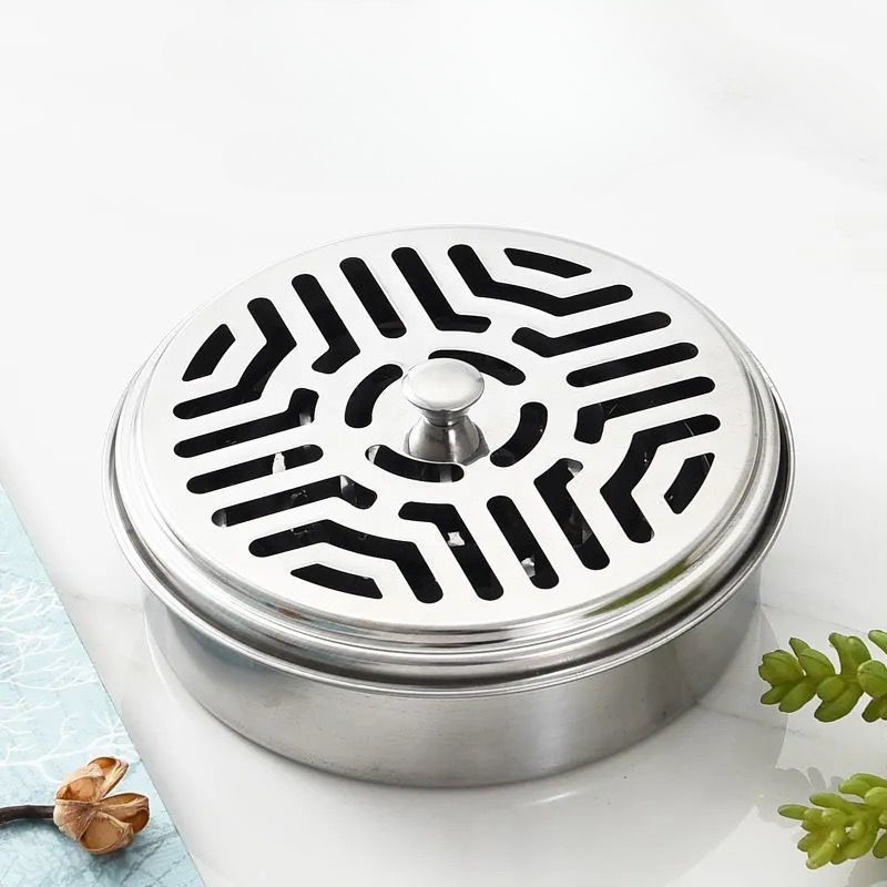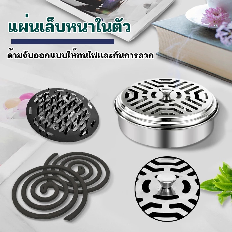 ถาดใส่ยากันยุง (มีฝาปิด) – ตะแกรงสแตนเลส ทนทาน ไม่ขึ้นสนิม (กันความร้อน)