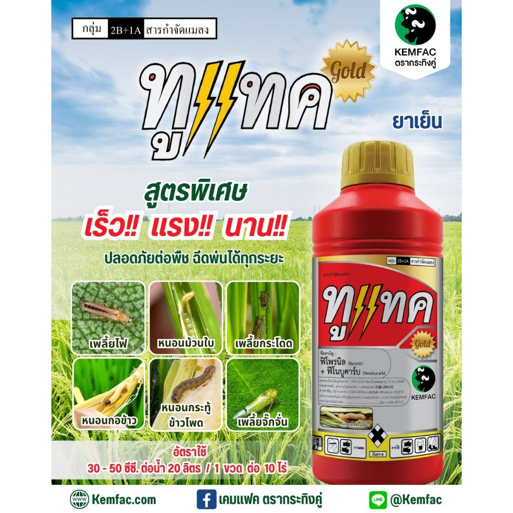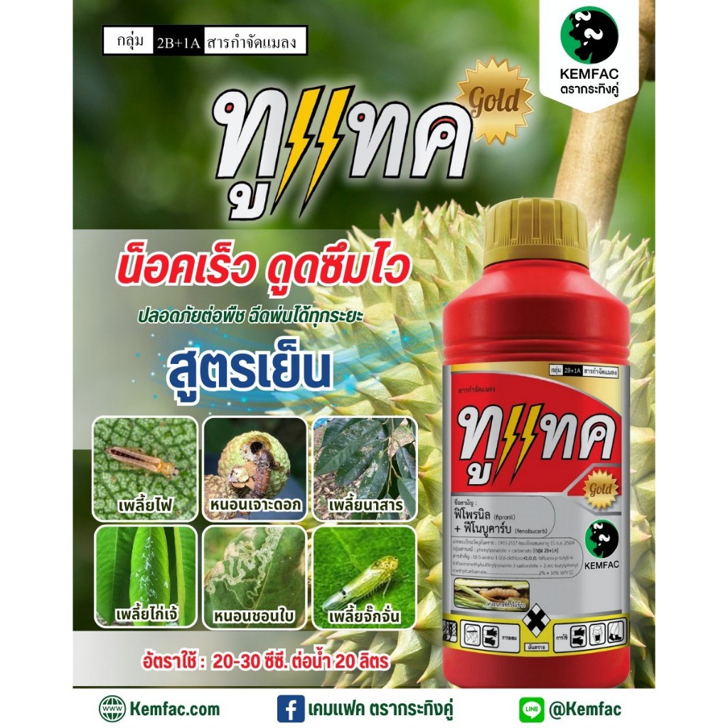 ทูแทคโกลด์ ขนาด1ลิตร แทรกซึมทะลุผ่านใบ ออกฤทธิ์รวดเร็ว เพิ่มประสิทธิการกำจัดแมลง ลดโอกาสแมลงดื้อยา