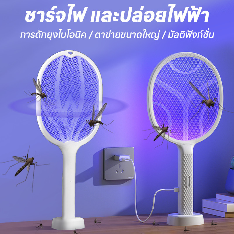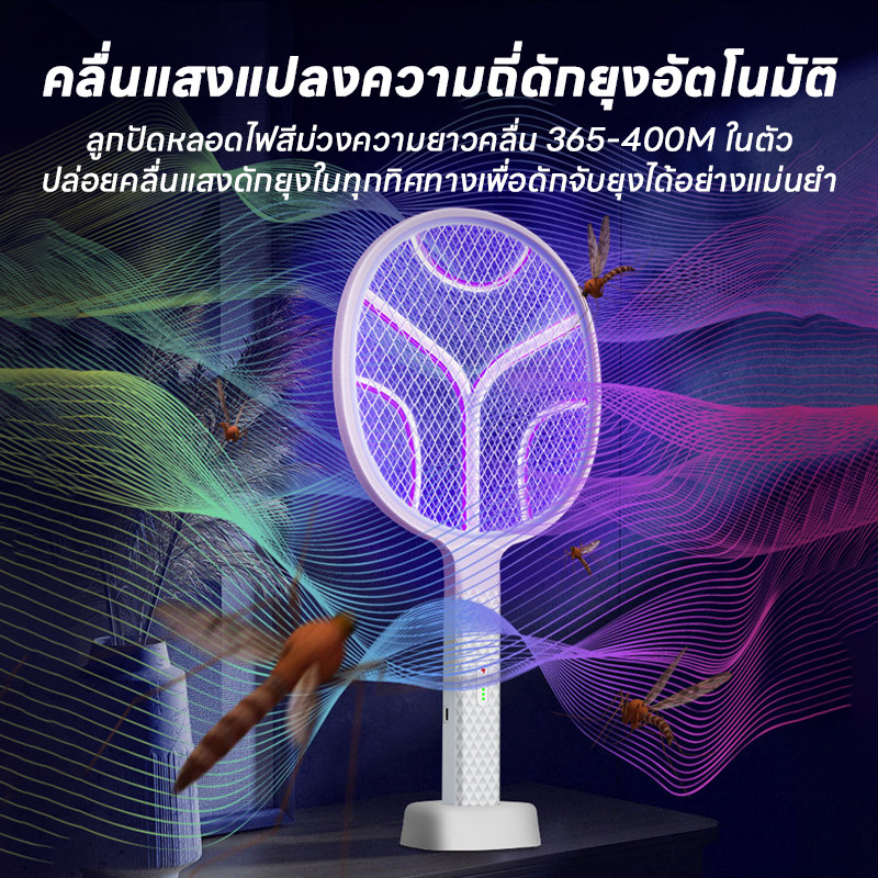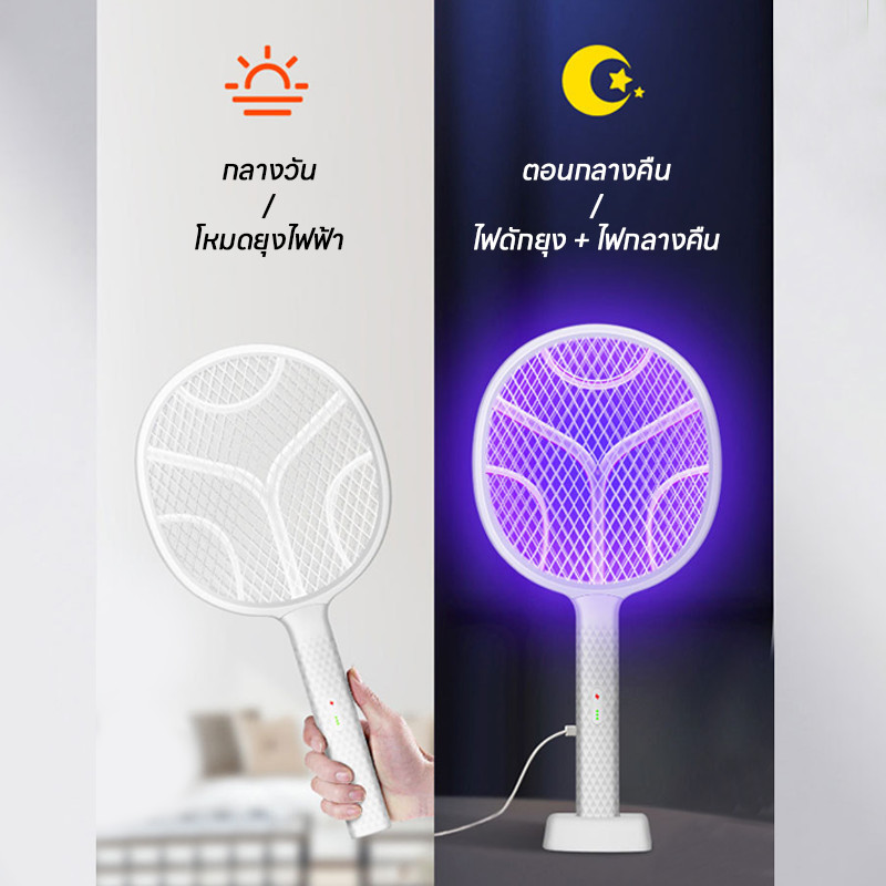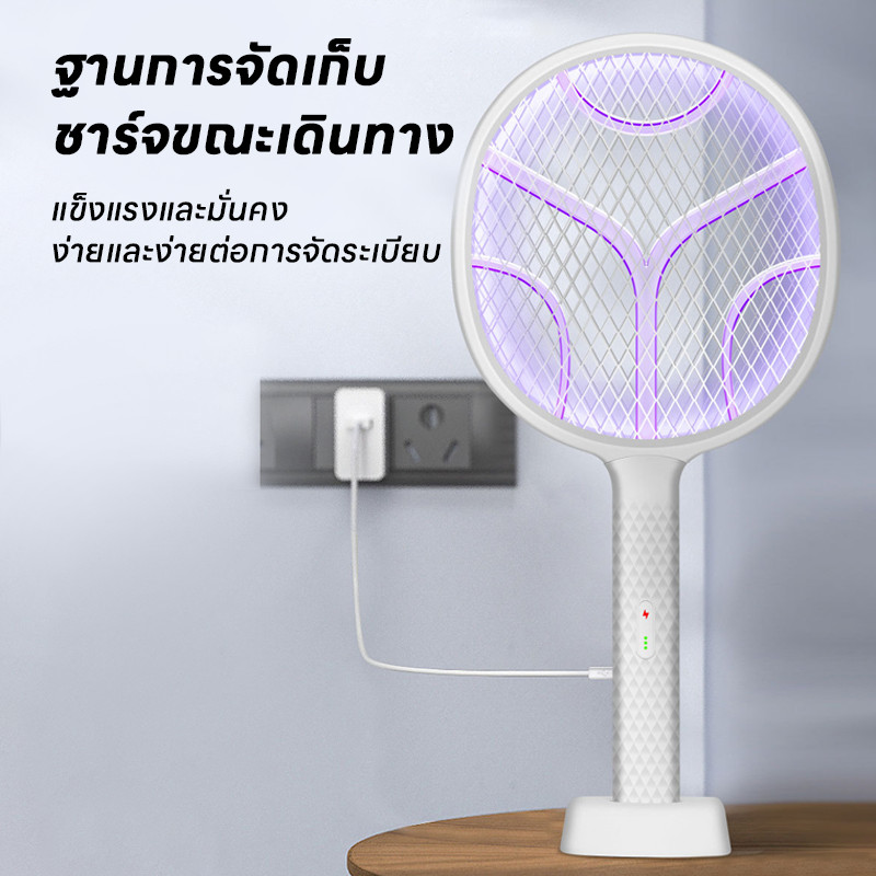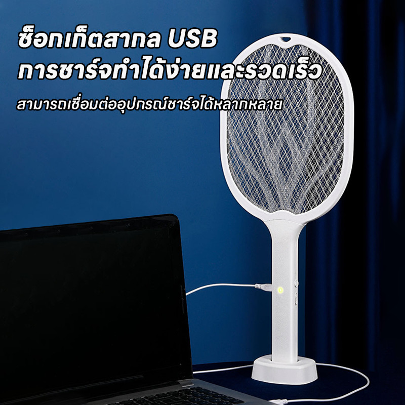 ⚡การรับประกัน⚡ ไม้ตียุงไฟฟ้า 2in1 เครื่องดักยุง 3,500V ไม้ตียุง มีแสงสีม่วงล่อยุง USB และแท่นวางชาร์จ
