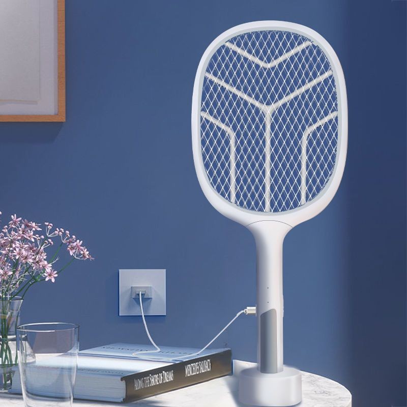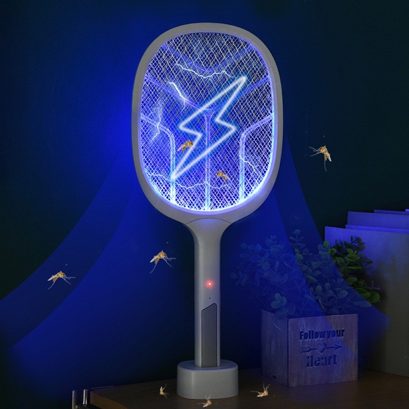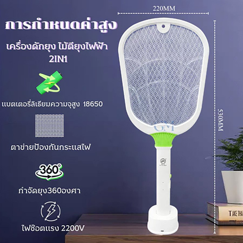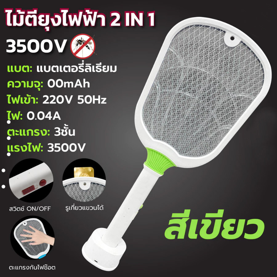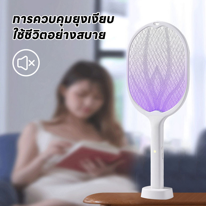 ⚡การรับประกัน⚡ ไม้ตียุงไฟฟ้า 2in1 เครื่องดักยุง 3,500V ไม้ตียุง มีแสงสีม่วงล่อยุง USB และแท่นวางชาร์จ