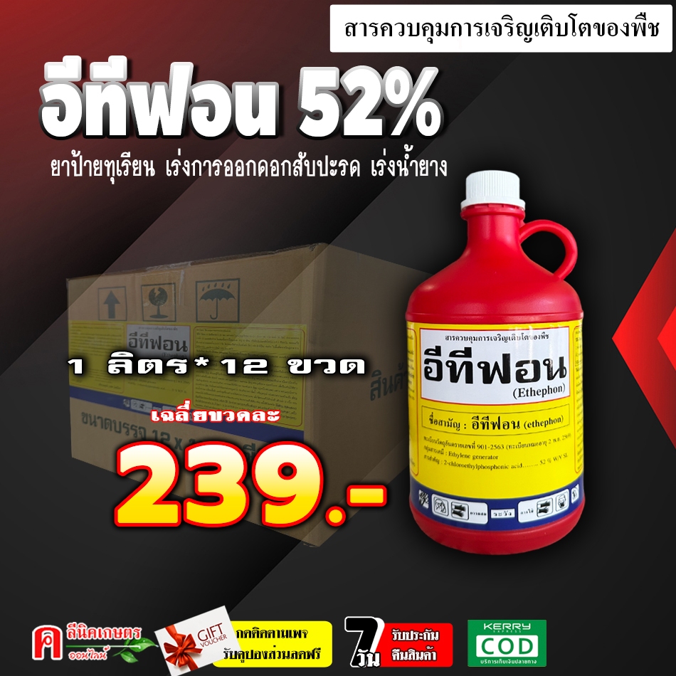// ขายยกลัง // ET // อีทีฟอน 52 ( น้ำใส )( 12 ลิตร ) เร่งการสุกของผลไม้ ยาป้ายทุเรียน น้ำยาบ่มกล้วย มะม่วง ใช้เร่งการ