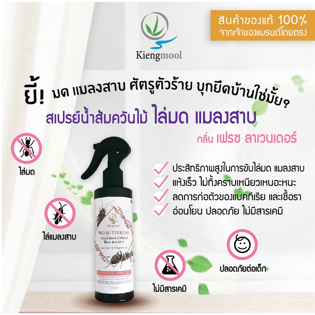 Kiengmool สเปรย์น้ำส้มควันไม้เคียงมูล ไล่มด แมลงสาบ กลิ่นลาเวนเดอร์ และเปปเปอร์มินต์ 240 มล.