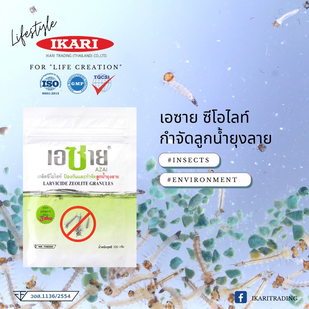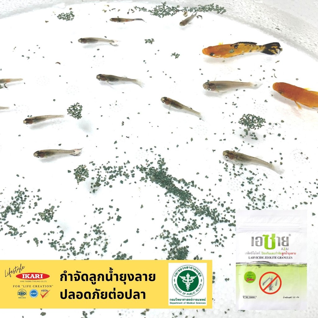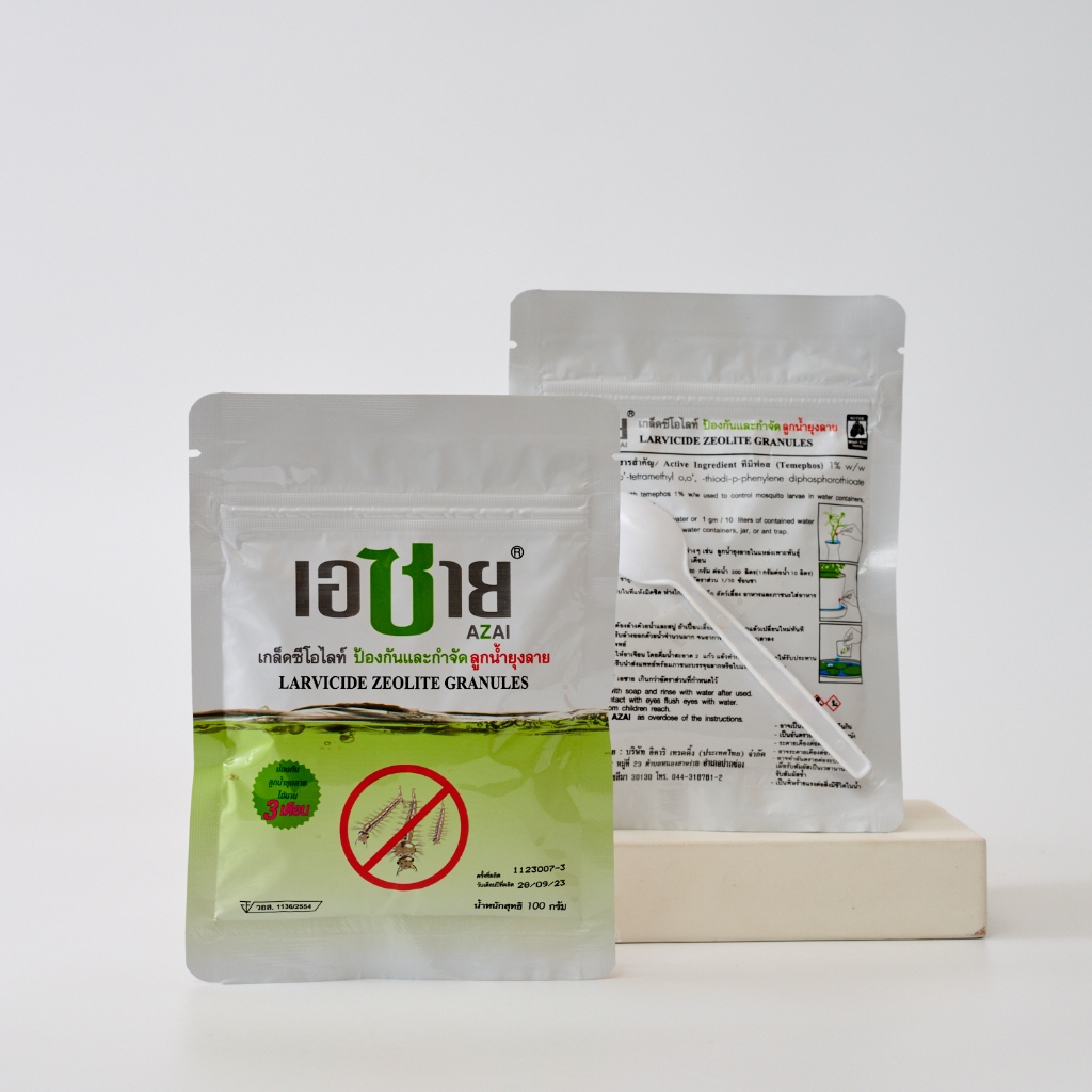 AZAI (เอซาย) ซีโอไลท์กําจัดลูกน้ำยุงลาย ซอง 100 กรัม เกล็ดหินภูเขาไฟซีโอไลท์ กําจัดลูกน้ำยุง ช่วยให้น้ำใสสะอาด