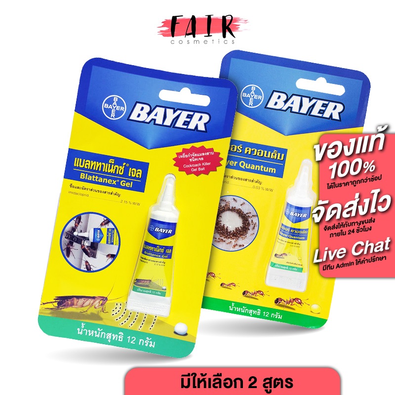 Bayer Quantum/Blattanex Gel ไบเออร์ ควอนตั้ม/แบลททาเน็กซ์ เจล [12 g.] กำจัดมด กำจัดแมลงสาป เหยื่อมด เหยื่อแมลงสาป เจลกำจ