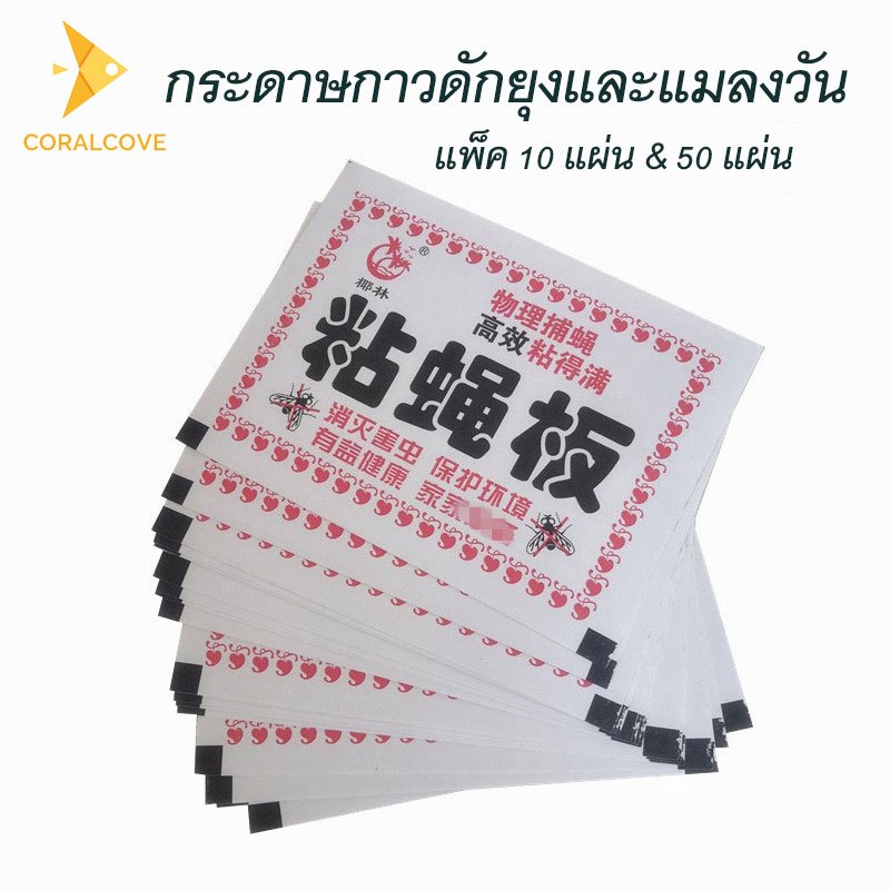 coralcoveshop กระดาษกาวดักยุงและแมลงวัน แพ็ค 10 แผ่น ปลอดสารพิษ ติดแน่นนาน ใช้ได้ในบ้าน กลางแจ้ง