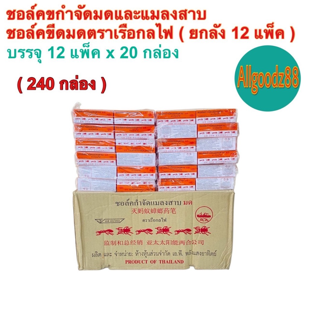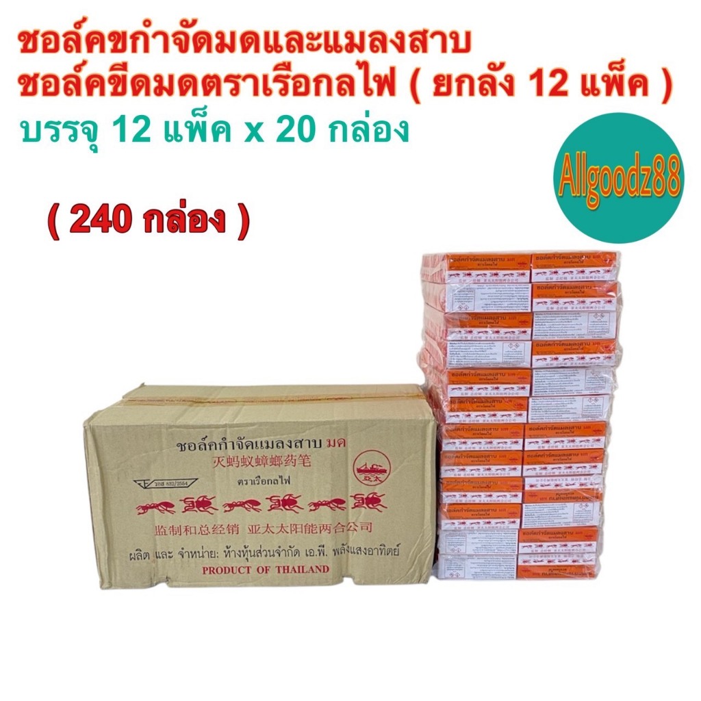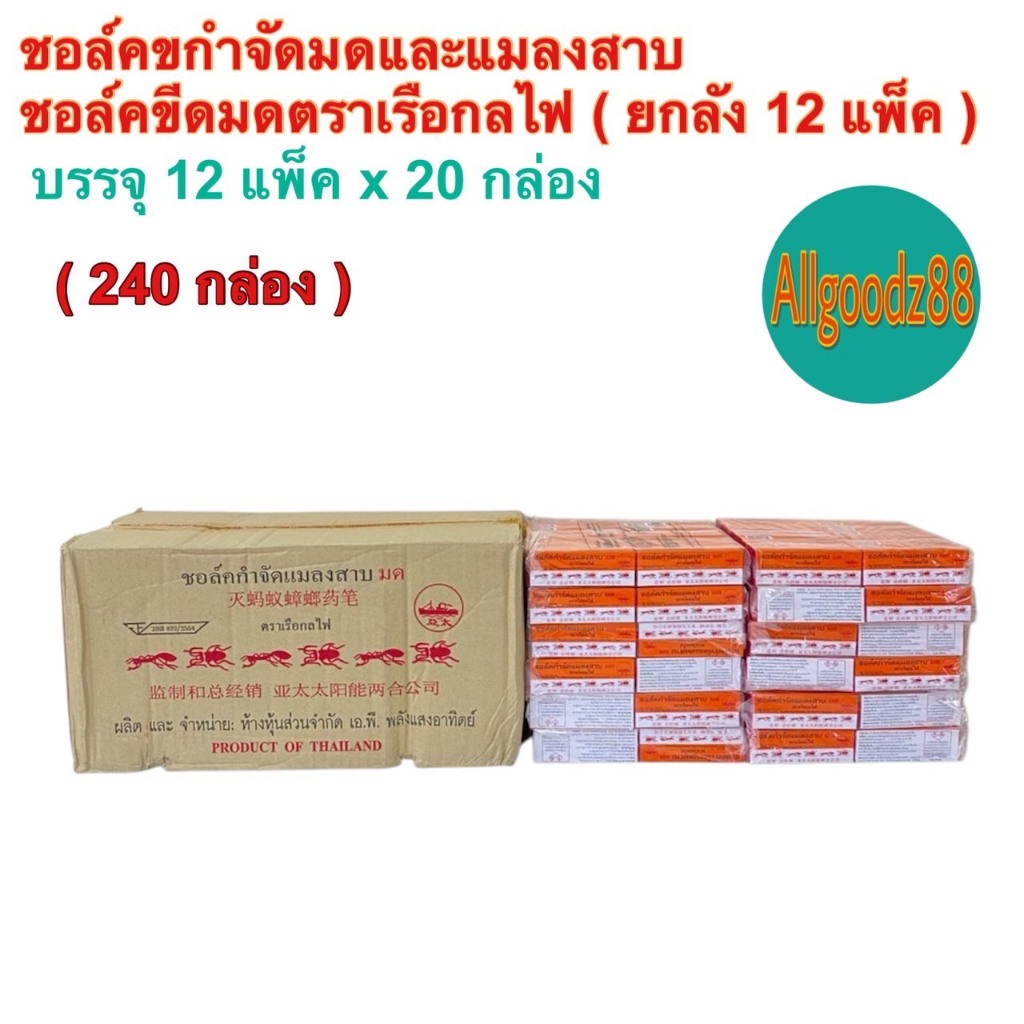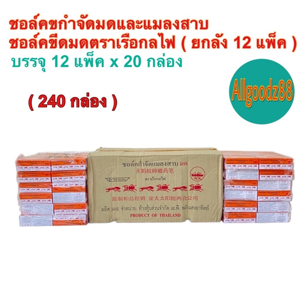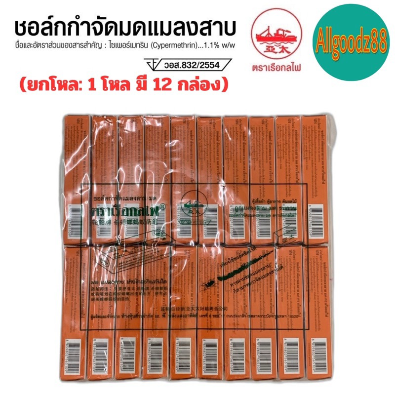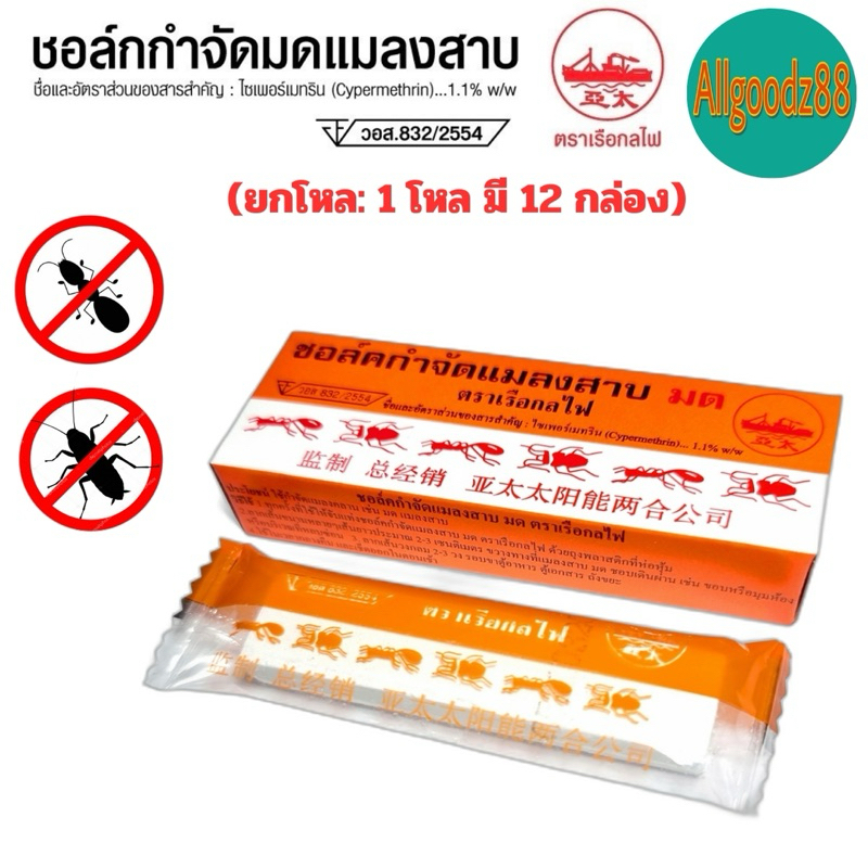 ชอล์คกำจัดมด แมลงสาบ ตราเรือกลไฟ ขนาด 10 กรัม ( ยกโหล: 1 โหล มี 12 กล่อง ) และ ( 1 ห่อ มี 20 กล่อง )