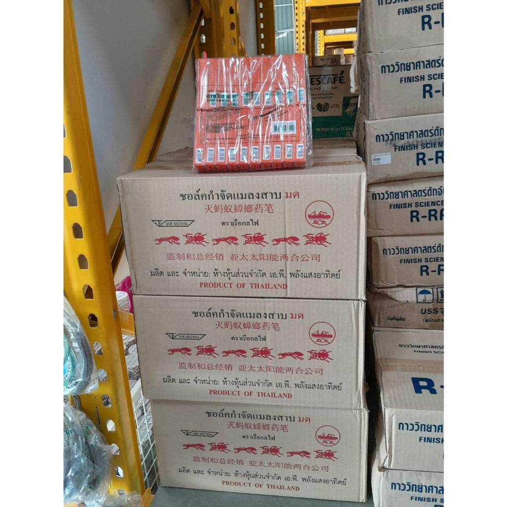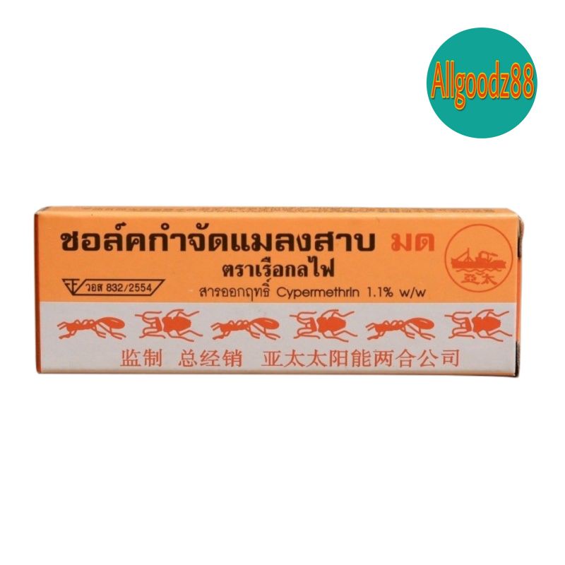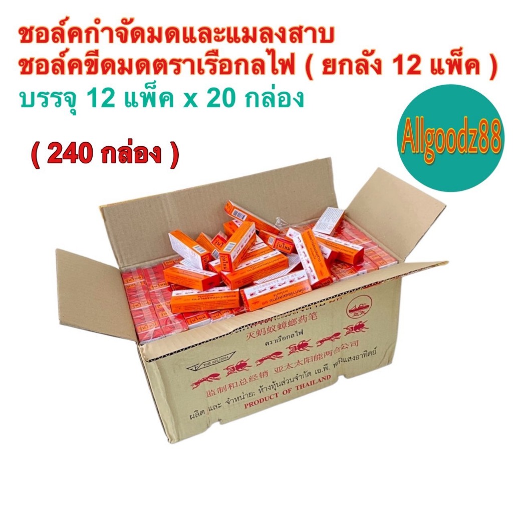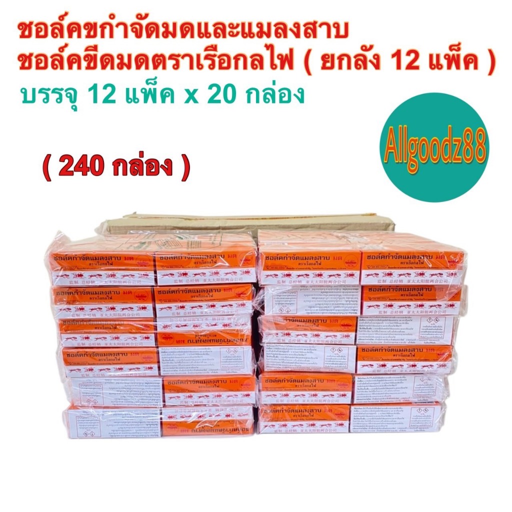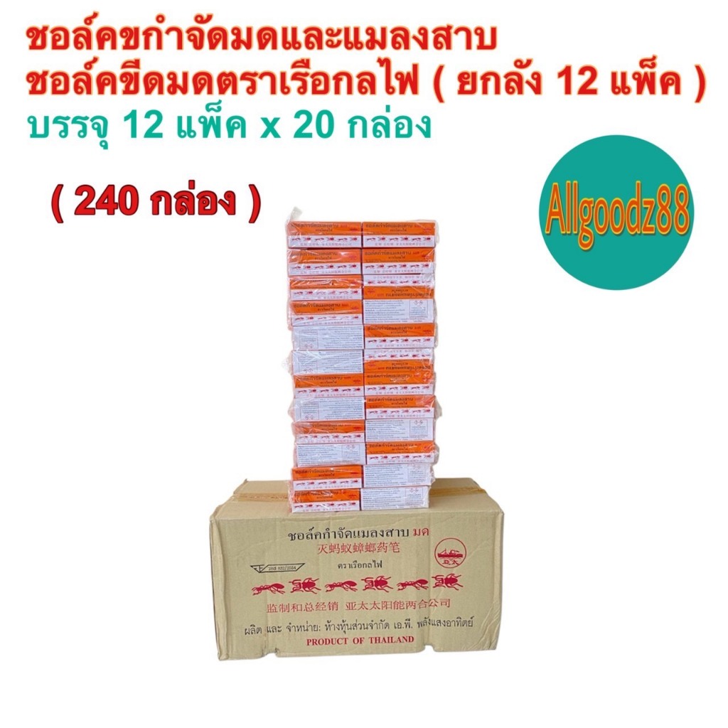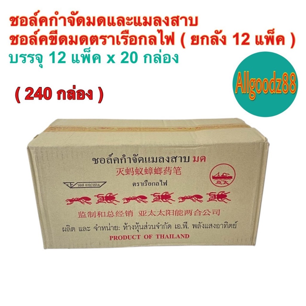 ชอล์คกำจัดมด แมลงสาบ ตราเรือกลไฟ ขนาด 10 กรัม ( ยกโหล: 1 โหล มี 12 กล่อง ) และ ( 1 ห่อ มี 20 กล่อง )
