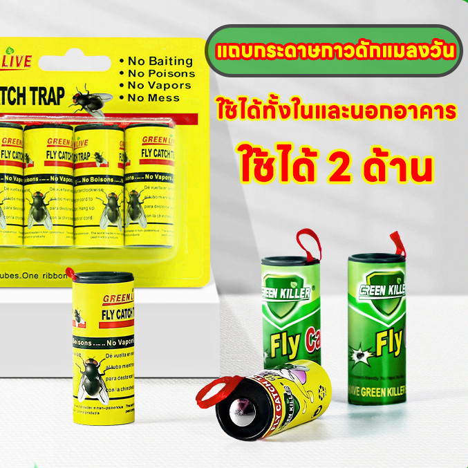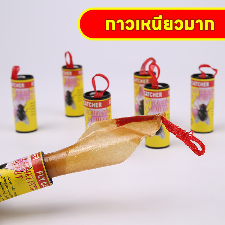 จัดส่งในกรุงเทพฯ ริบบิ้นแขวนสำหรับดักแมลงวันสำหรับในร่มและกลางแจ้ง แถบกระดาษกาวดักแมลงวัน Sticky Fly Catcher Trap