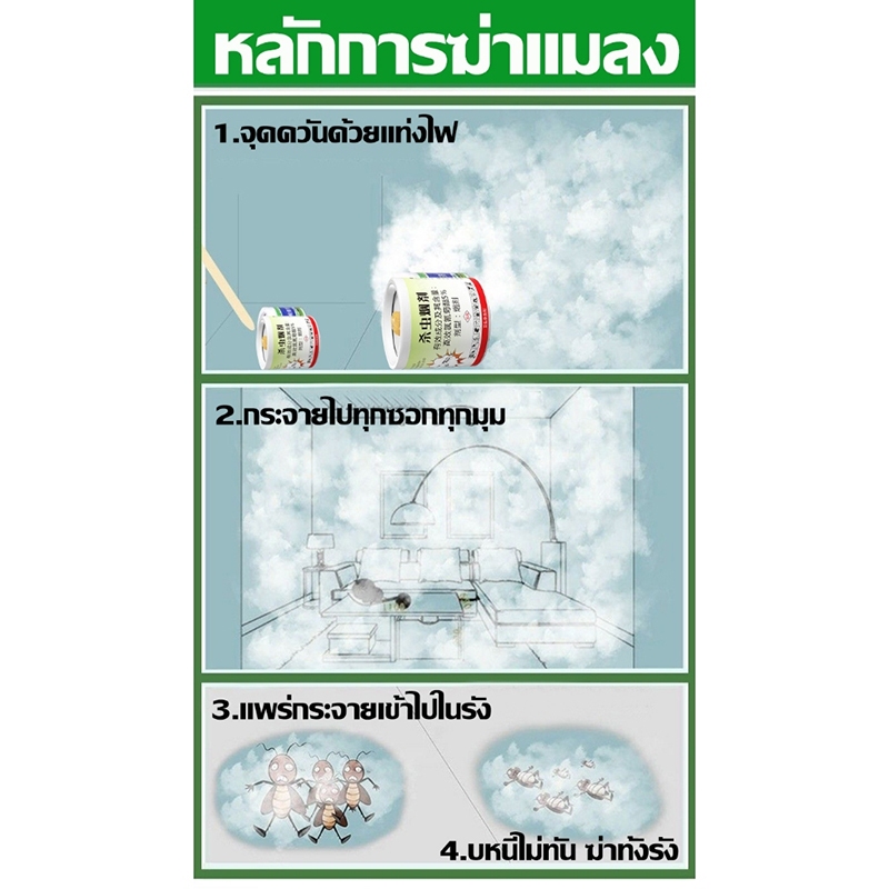 ฆ่าแมลงรอบทิศทาง360° 💥จุดหนึ่งครั้ง50ปีไร้แมลง💥ควันไล่แมลง กำจัดแมลงสาบ หมัด แมลงวัน ตัวเรือด ยุง และแมงมุม หนู งูปลวก แ