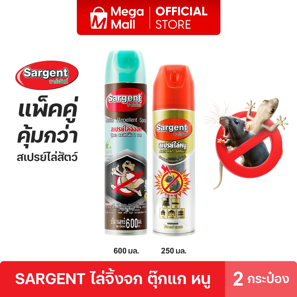 จับคู่คุ้ม Sargent ซาเจ้นท์ สเปรย์จิ้งจก 600 ml และ ไล่หนูขนาด 250 ml สูตรเป็นมิตรกับสัตว์เลี้ยง By Mega Mall