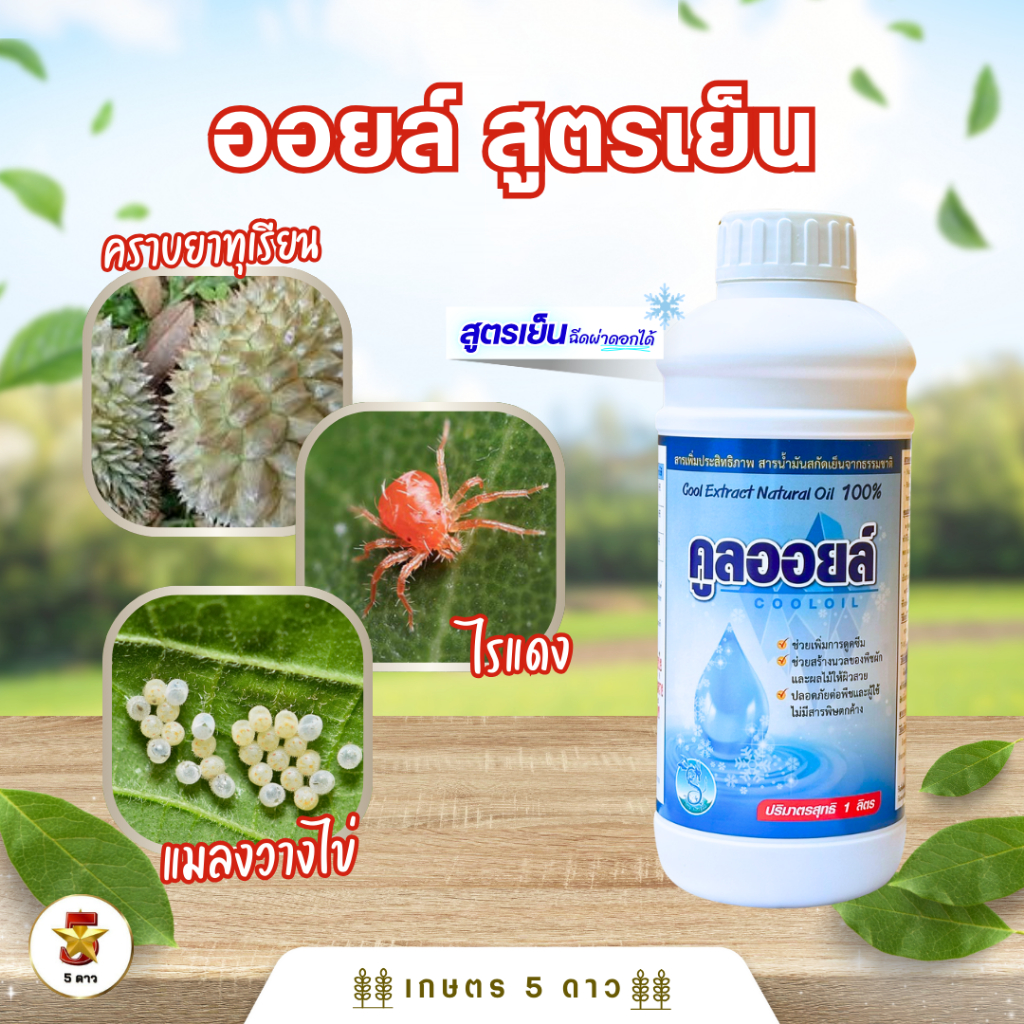 คูลออยล์ (ออยล์ สูตรเย็น) ขนาด 1 ลิตร เย็น ฉีดดอกได้ คุม-ฆ่าไข่ เพลี้ย หนอน แมลง ไรแดง